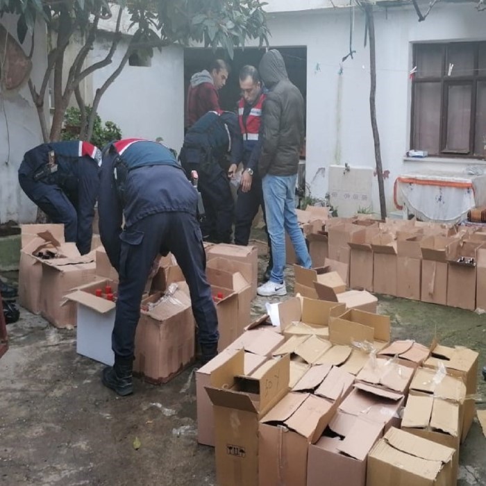 Ezine Cumhuriyet Başsavcılığından alınan arama kararına istinaden yapılan arama sonucunda kaçak içki üretimi yapıldığı tespit edilmidi Yapılan aramada 141 Adet 100 cc Yeni Rakı, 341 Adet 70 cc Yeni Rakı, 234 Adet 50 cc Yeni Rakı, 24 Adet 100 cc Mey Rakı, 55 Adet 100 cc Tekirdağ Rakı, 34 Adet 70 cc Markasız Rakı, 45 Adet 50 cc Tekirdağ Rakı, 12 Adet 35 cc Yeni Rakı, 8 Adet 70 cc Perlova Votka, 1 Adet 70 cc Jack Dannies marka Viski, 1 Adet 70 cc Margold marka viski, 120 Adet Vega 100 ibareli Cinsel güç arttırıcı hap, 6 kutu 100 Mg Cialis Cinsel Güç Arttırıcı hap, 10 Paket Zümerret marka kaçak sigara, 4 Paket Busines Roal marka kaçak sigara, 2 Paket Victory marka kaçak sigara, 35 Adet doluma hazır boş rakı şişesi, 35 Adet bilyeli şişe kapağı olmak üzere toplam 681.50 litre kaçak rakı, 1.40 litre kaçak viski, 5.50 litre kaçak votka ele geçirildi. Şüpheli İ.G ve M.Ü. isimli şahıslar Cumhuriyet Savcısının talimatıyla gözaltına alındı, ele geçen malzemeler muhafaza altına alınarak Yedi Emine teslim edildi.
