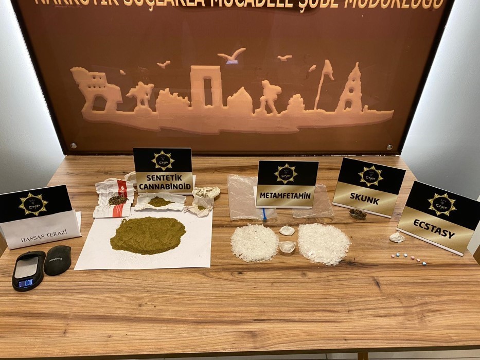 Çanakkale Emniyet Müdürlüğü Narkotik Suçlarla Mücadele Şube Müdürlüğümüzce Çanakkale İl Merkezi ve ilçelerinde Uyuşturucu Madde Satışı yapan ve Kullanan Şahıslara yönelik sürdürülen operasyonlarda “Türk Ceza Kanununun 191. Maddesi olan Kullanmak için Uyuşturucu veya Uyarıcı Madde Satın Almak, Kabul Etmek veya Bulundurmak” suçundan 6 şüpheli şahıs yakalanarak gözaltına alındı, gözaltına alınan 6 süpheli işlemlerin ardından serbest bırakılmış, “Türk Ceza Kanununun 188. Maddesinde Uyuşturucu veya Uyarıcı Madde İmal ve Ticareti” suçundan toplam 4 şüpheli gözaltına alındı, 1 şüpheli adli kontrol şartıyla mahkemeden serbest bırakıldı, 2 şüpheli işlemleri ardından serbest bırakıldı. Yapılan yakalamalar neticesinde şüphelilerden 240,76 gram Sentetik Kannabinoid (Bonzai), 105,28 gram Metamfetamin, 1,45 gram Skunk, 6 adet Ecstasy, 1 adet hassas terazi ve 1 adet kurusıkı tabanca ele geçirildi. Ele geçirilen tüm maddelere el konuldu.