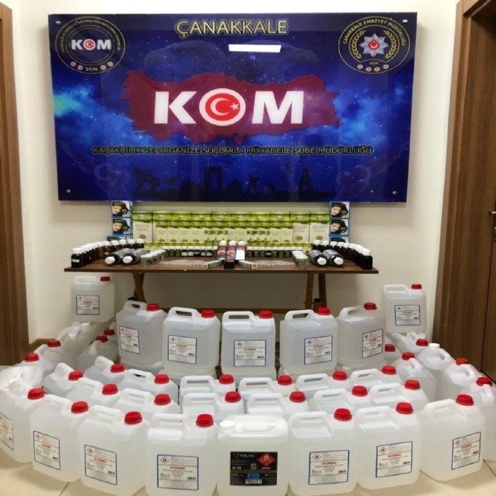 Çanakkale Emniyet Müdürlüğü KOM Şube Müdürlüğümüzce görevlilerimizce ilimiz genelinde Kaçakçılık Suçları ile mücadele kapsamında Çanakkale İl Merkezinde yapılan çalışmalarda A.G ve B.G. isimli şahısların işyerlerinde yapılana aramalar neticesinde, Toplam 245 litre Etil Alkol, 124 adet Anason Aroması ve Ekstrat, 6 adet Cinsel İçerikli ürün, 8 adet Gümrük Kaçağı Kına, 78 adet Balonlu Pipet ele geçirilerek el konuldu, olay ile ilgili A.G ve B.G. isimli şahıslar yakalandı. Yakalanan şüpheliler yapılan işlemlerinin ardından Çanakkale Cumhuriyet Başsavcılığının talimatı doğrultusunda serbest kaldı