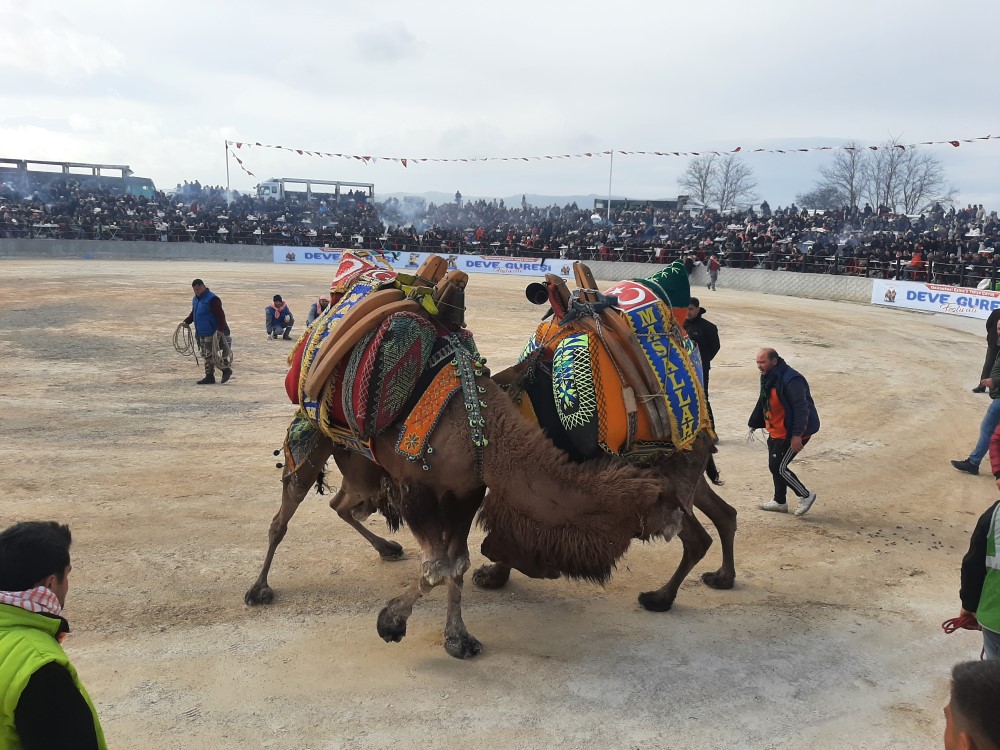Ezine Deve Güreşleri Arenası Tribünleri Tıklım Tıklım Doldu