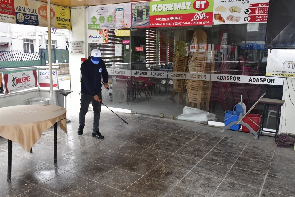Biga Belediyesi, 1 Haziran Pazartesi gününden itibaren yeniden vatandaşlara hizmet vermeye başlayacak olan Biga’daki kıraathanelerde dezenfekte çalışması yaptı. Biga Belediyesi, Koronavirüsle (Kovid-19) mücadele kapsamında tedbir ve çalışmalarına devam ederken, Biga esnafına destek niteliğindeki faaliyetlerini de sürdürüyor. Bu kapsamda Kovid-19 tedbirleri nedeniyle geçici olarak faaliyetleri durdurulan kıraathaneler 1 Haziran Pazartesi günü müşterilerine yeniden hizmet vermek için hazırlık yaparken, Biga Belediyesi ekipleri de Biga Belediye Başkanı Bülent Erdoğan’ın talimatıyla dezenfekte çalışması gerçekleştirdi. Belediye ekipleri, Biga Kahveciler Esnaf Odası’na bağlı olarak hizmet veren kıraathaneleri masa, sandalye, kapı ve ocaklar başta olmak üzere yerleri dezenfekte ederken, ilaçlanan mekanlara belge verildi.