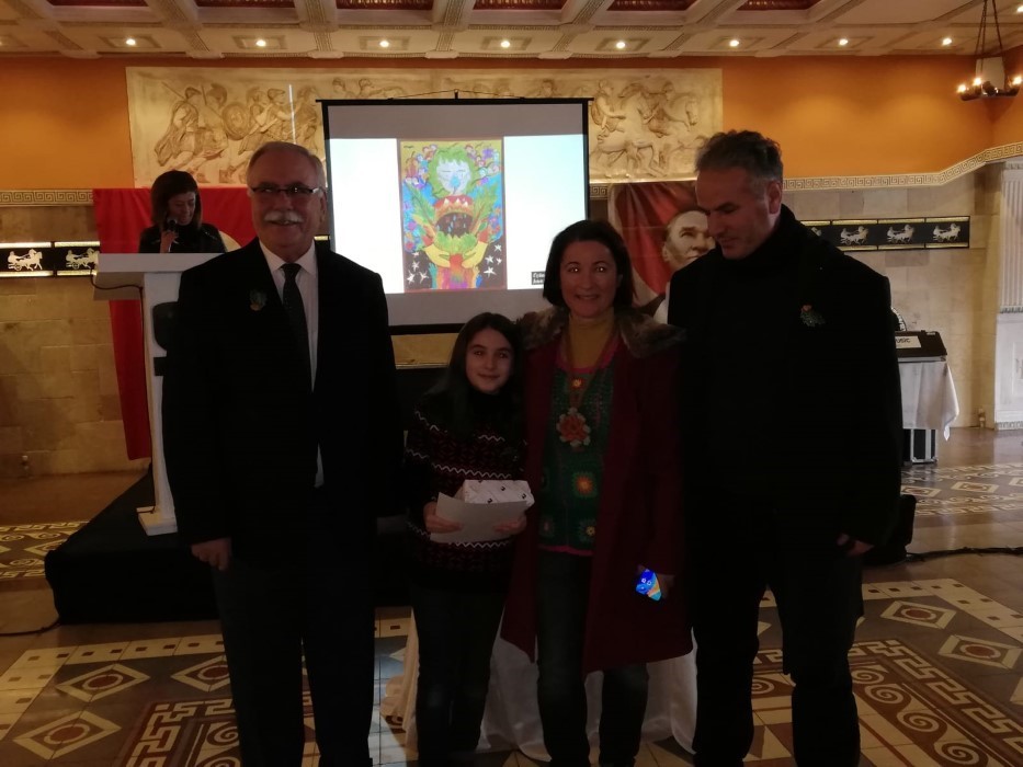 “Bir şey dikkatinizi çekmiş olabilir. Ödül alanların dörtdü’ de kız. Hani ülkede var ya mensuplar, onlar bundan ibret alsın. Kadının gücü. Konuya ne kadar duyarlılar ki, bu resimleri yaptılar ve başarı kazandılar. Ben kendilerini ayrı ayrı tebrik ediyorum. Yarışmaya katılan 165 çocuğumuza da teşekkür ediyorum.Bu salonda sergilenen resimlerin her biri çok değerli çocukların emeği var, her resimde çoçukların çevreye olan duyarlılığı var.”
