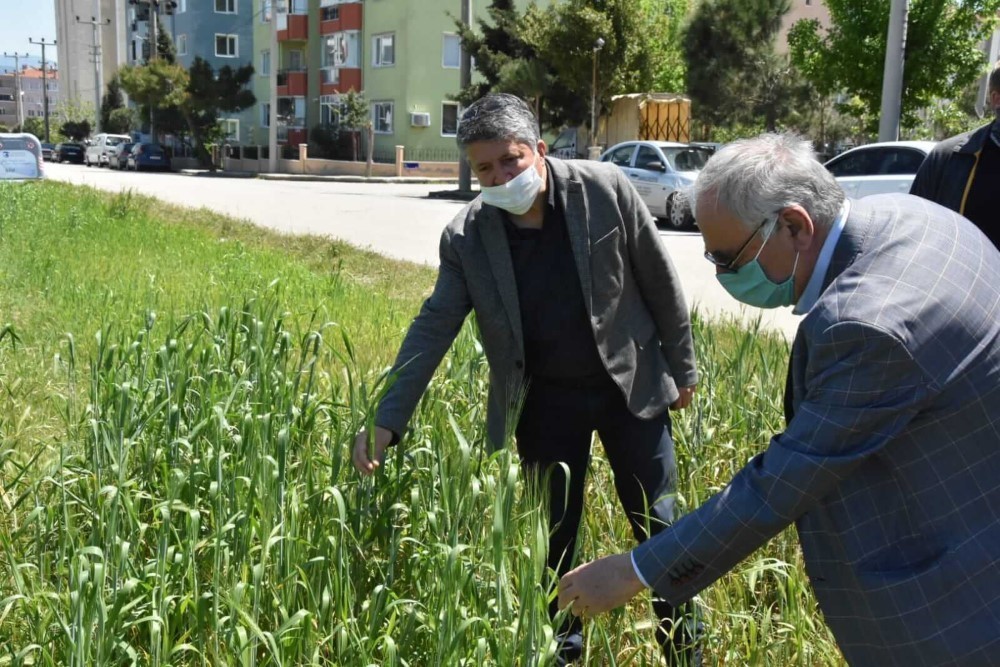 Çanakkale Belediye Başkanı Ülgür Gökhan, Çanakkale Belediyesine ait 4 ayrı parselde, toplam 107 dekar arazide ekimi gerçekleştirilen ve başak vermeye başlayan karakılçık buğday alanlarını inceledi.