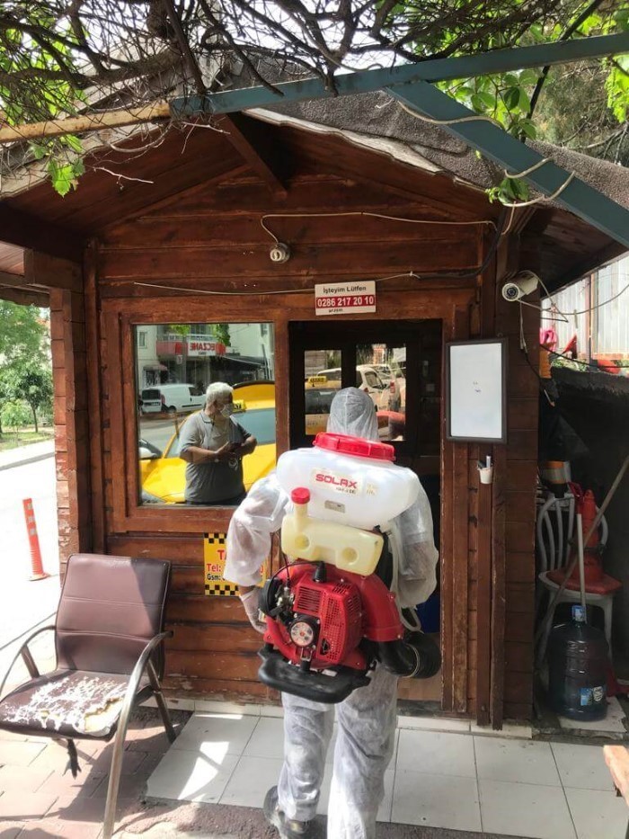 TAKSİ DURAKLARI VE TAKSİLER DEZENFEKTE EDİLDİ