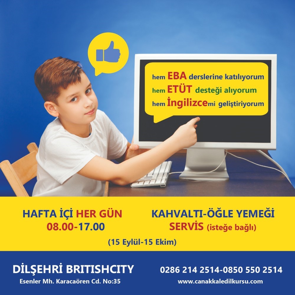 Çanakkale Dil Şehri ilkokul 5, 6 ve 7 sınıflar için eğitım programı düzenliyor. Özellikle anne ve babasi çalışan ögrenciler için düzenlenen eğitim programında, eğitmenler eşliğinde Milli Eğitim Bakanlığinin uzaktan eğitim sistemi olan EBA ile eğitim yine eğitmenler eşliğinde Etüt calisması ce İngilizce eğitimi bulunuyor.Canakjale Dil Sehrinden "Endiselenmeye Son!" Sloganı ile yapılan açıklamada
