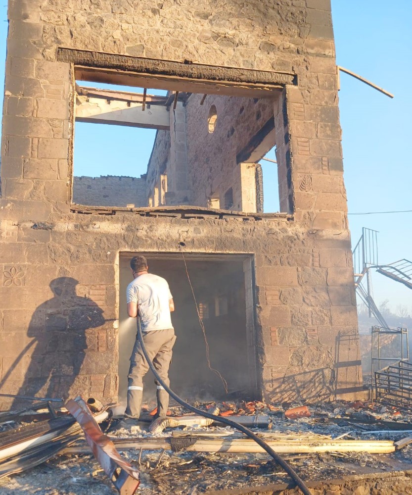 Ezine ilçesinde çöplükte başlayan yangın, rüzgarın etkisiyle hızla makilik ve ormanlık alana sıçradı. Yangın nedeniyle Kiremitoba ve Aladağ köyleri tedbir amaçlı tahliye edildi. Bu köylerde bazı evler ve ahırlar yangında hasar gördü. Ezine'deki yangın, itfaiye ekiplerinin havadan ve karadan yoğun müdahaleleri sayesinde kontrol altına alındı, ancak bölgede soğutma çalışmaları devam ediyor.