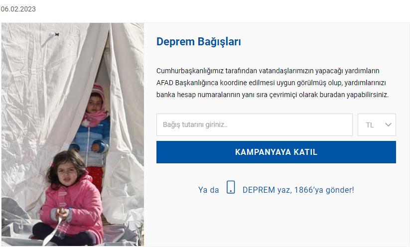 “DEPREM” yazarak 1866’ya SMS gönder (SMS bedeli: 20 TL)