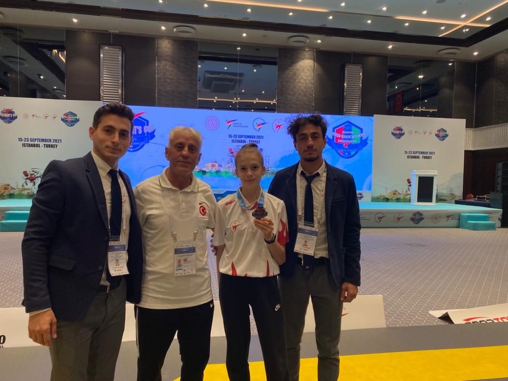 15-22 Eylül 2021 tarihleri arasında İstanbul’da yapılan “6. Dünya Taekwondo Başkanlık Kupası” şampiyonası yapıldı. Şampiyonaya dünyanın dört bir yanından 20 civarında ülke ile 2500 sporcu katıldı. G1 klasmanında olan ve olimpiyatlara puan veren bu şampiyonaya sporcular puan toplamak için katıldı. Olimpiyat ve Dünya dereceleri olan sporcuların katılması maçlara ayrı bir heyecan kattı. Sporcular şampiyon olmak için tüm hünerlerini ortaya koyarak ter döktüler. Çanakkale’den 2 sporcumuz Türkiye Şampiyonası ve milli takım seçmesinde elde ettikleri başarılar ile Türkiye Taekwondo milli takımına çağırılarak al bayrağımızı temsil ettiler. Zorlu geçen şampiyonada 44 kg gençler kategorisinde yarışan sporcumuz İrem Dinç rakiplerini tek tek yenerek yarı final maçına çıktı. Çok tecrübeli Rus rakibiyle kıyasıya maç ortaya koymasına rağmen sporcumuz İrem üçüncü olarak bronz madalyayı milli takıma kazandırdı. Gururumuz olan İrem elde ettiği bu başarı ile 2022 yılında yapılacak olan Avrupa taekwondo şampiyonasına katılma hakkı kazandı. Türkiye Taekwondo Milli Takım Antrenörü ve Çanakkale Taekwondo İl Temsilcisi Hasan Altunışık konuyla alakalı açıklamalarda bulundu “Sporcum İrem’i maça teknik, taktik ve psikolojik olarak en iyi şekilde hazırladık. Şampiyonluğu hedefleyerek gittiğimiz şampiyonada Avrupa dereceleri olan Rus rakibimizle verdiğimiz kıyasıya mücadele sonrasında İrem Rus rakibine mağlup oldu. Bu maçtan şampiyon olarak ayrılan bu sporcu geçen Estonya’da yapılan Avrupa şampiyonasında 2. olmuştu. Önümüzdeki sene yapılacak olan Avrupa Şampiyonasında Milli Takımı adına al bayrağımızı temsil edecek olan sporcum İrem ile en iyi şekilde hazırlanarak şampiyonluğu hedefleyerek orada bulunacağız. Bu şampiyonada gerekli notlarımızı aldık ve eksikliklerimizi tespit ettik. Avrupa Şampiyonasına kadar antrenman programımızı iyileştirerek Avrupa şampiyonasına hazırlanacağız. Benim İrem’e olan inancım tam. Bu şampiyonada bize yaşattığı gurur ve kazandığı başarı sebebiyle İrem’i kutluyorum. Başarılarının devamını temenni ediyorum. Ayrıca bu büyük organizasyonda Çanakkale olarak bizlere büyük görev düştü. Şahsım Milli takım antrenörü olarak, Anafartalar Spor Kulübü antrenörlerimizden Samet Altunışık ve Yunus Emre Altunışık hakem olarak şampiyonada görev aldı. Bu görevlendirmeler Çanakkale Taekwondo il temsilcisi olarak beni gururlandırdı.“