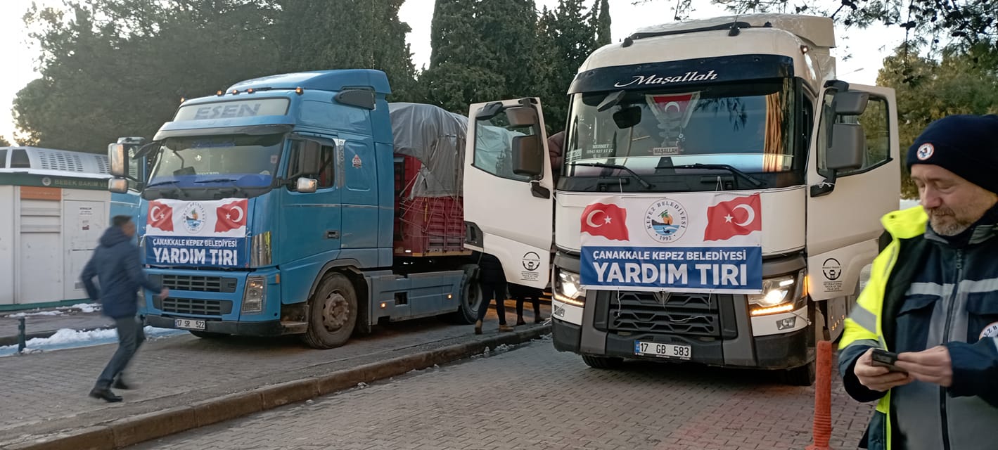 Kahramanmaraş’ın Pazarcık ilçesinde 7,7 ve Elbistan ilçesinde 7.6 büyüklüğünde meydana gelen depremler 10 ilde büyük yıkıma neden olmuştu. Depremde çok sayıda bina yıkılırken, yıkılan bina altındaki vatandaşları kurtarma çalışmaları devam ediyor. Yabancı ülkelerin kurtarma ekipleri dahil Türkiye’nin dört bir yanından UMKE ve AFAD ekipleri hem karadan hem de havadan depremde yıkım yaşayan İllere ulaşmaya çalıştı. Binaların yıkıldığı illere uluşan kurtarma ekipleri enkaz altında olan vatandaşları kurtarma çalışmalarına devam ediyor. Ancak depremde hayatını kaybedenlerin sayısı her geçen saat artıyor. Kahramanmaraş, Kilis, Diyarbakır, Adana, Osmaniye, Gaziantep, Şanlıurfa, Adıyaman, Malatya ve Hatay'ı da sarstı. Bütün kentlerde yıkılan binalar ve enkaz altında kalan vatandaşları kurtarma çalışmaları devam ederken evlerini kaybeden ve zorlu kış şartlarında dışarda kalan, enkaz başında bekleyen, enkaz kaldırmaya yardımcı olan vatandaşlar için başlatılan yardım kampanyaları tüm hızı ile devam ederken Kepez Belediyesi tarafından başlatılan yardım kampanyasında Kepez halkının ulaştırdığı yardımlar Kepez Belediyesi ve Kepezli gönüllüler tarafından tasnif edildikten sonra yardım tırlarına yüklenerek deprem bölgesine doğru yola çıkarıldı. Yardım tırlarının uğurlanması sırasında Kepez Belediye Başkanı Birol Arslan “ iki büyük deprem sonrasında 10 ilde büyük yıkımlar meydana geldi ve deprem felaketi ateşi yüreğimize düştü. Deprem felaketinin hemen ardından belediyemiz müdürleri ile gerçekleşen toplantıda deprem bölgelerine iletilmesi için hızlıca bir yardım kampanyası başlatılması konusunda karar aldık ve deprem yardım kampanyasını Kepez Belediyesi olarak başlattık. Kepez halkının da desteği ile iki gündür çok yoğun tempoda belediye personelimiz ve gönüllüler belediyeye ulaştırılan yardımları tasnif edildi. Gıda ürünleri, kış giysileri, elektrikli ısıtıcılar tüplü ısıtıcılar ayrıştırıldı ve yeniden düzenlendi. Yoğun çalışmalar sonrasında iki tır yardım malzemesi oluşturuldu ve bu tardım tırları yola çıkartıyoruz. Yardım tırlarımız en çok bina yıkımı yaşayan Hatay ilimize gönderiyoruz. Kepez’den Hatay ilimizde hayatını kaybedenlere Allahtan rahmet, kayıp yaşayan ailelere Allah’ tan sabır, sağ kalanlara da geçmiş olsun dileklerimizi gönderiyoruz . Yardım tırlarımızı hayata depremzedelere ulaştıracak olan şoförlerimize hayırlı yolculuklar diliyorum. Allah ülkemize bu acıları tekrar yaşatmasın.” dedi Kepez Belediye Başkanı Birol Asrla’nın konuşmasının ardından Kepez Belediyesi deprem yardım tırları Hatay’a doğru yola çıktı.