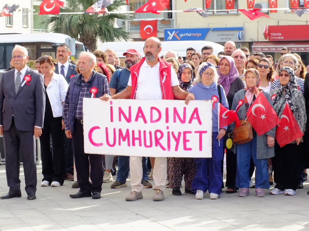 Başkan Gökhan “Cumhuriyetimizin önsözünün yazılı topraklarda yaşıyoruz. 1915’te hemen karşı kıyımızda adeta kıyamet kopuyordu. Emperyalistler olunca güçleriyle boğazımıza, boğazımızı zorluyordu. Onların silah gücü, insan gücü vardı. Ama bir şey eksikti. İman gücü. Vatan şairi Mehmet Akif Ersoy ‘benim iman Göğsüm gibi Serhattin var’ Dizesiyle İstiklal Marşımızda da ifade ettiği gibi bu iman gücü, bu vatan aşkı, bu inanç adeta bir set oldu, düşmanı geri püskürttü. Yetmedi, milli mücadele ruhuyla tüm Anadolu'yu sardı, sarmaladı, ülkeyi uçurumun kenarından, cumhuriyetin faziletlerine taşıdı. İşte bu nedenle bugün Mavisini, doyasıya içimize çektiğimiz Çanakkale Boğazı'nda, dostluk içinde yaşadığımız barışın kenti Çanakkale'mizde. Modern cumhuriyetimizin kurucusu Gazi Mustafa Kemal ve yol arkadaşlarını anmak çok ama çok kıymetli. Türlü zorlukların içeriden dışarıdan türlü tehditleri, ihanetlerin kıldıramadığı yüz yıl önce Cumhuriyeti kuran irade ve bu irade omuzlayan Gazi Mustafa Kemal Atatürk ne demişti? ‘Yurtta sulh, cihanda sulh’ Ama sorarım size. Var mı cihanda sulh? İşte Gazze, yanıyor. İsrail, bebek, kadın, yaşlı, hastane demeden, yıkıp yakıp geçiyor. Tüm dünyanın gözleri önünde Orta Doğu'da yine bir katliam yaşadı. Silahlar sussun dedikçe, çocuklar ölüyor Barış hakim olsun dedikçe bombalar patlıyor. Masum insanlar yine iki ateşin ortasında kalıyor. Hiçbirimiz dilimizden dinimizden etnik kökenimizden dolayı savaşı, yokluğu, yerinden edilmeyi hak etmiyoruz. Herkesi insanlık onuruna yakışan barış ve güven içinde bir yaşamı hak ediyoruz” dedi. Şimdi cumhuriyetin ikinci yüzyılı başlıyor. Bu ülkede En büyük esere sahip çıkmak, Cumhuriyetimizi korumak ve kollamak ülküsünden asla vazgeçmeyeceğiz. Cumhuriyeti varlığımızı ve değerlerimizi korumak için demokrasi, hak, hukuk, adalet ve özgürlükler için, barış için bağrımıza basacağız. Özgürlüğü ve barışı sevenlere, koruyanlara ancak cumhuriyet yakışır. Ben tüm kalbimle inanıyorum. Biliyorum, cumhuriyeti kuranlarla mı, buna inanıyordum. Çünkü heykelimizin kaidesinde de yazan Ata'mızın tarihe geçen Türkiye Cumhuriyeti ilelebet payidar kalacaktır sözü ancak koşulsuz ve şartsız milletine duyulan güvenle Verilecek sözlerdir. Laik, demokratik bir hukuk devleti olan cumhuriyetimizin ilan edilişinin yüzüncü yılında bu kutsal, bu kadim barış şehrinin belediye başkanı olmanın gururuyla ülkemizin varlığının, milletimizin egemenliğinin, demokrasinin gücünün, hukukun üstünlüğünün üzerine hiçbir kararlı gövdenin düşmemesini diliyor, cumhuriyetimizin Yüzüncü yılını gururla tebrik ederken onu bizlere armağan eden kahramanlara sonsuz minnet ve şükranlarımı sunuyorum” dedi.