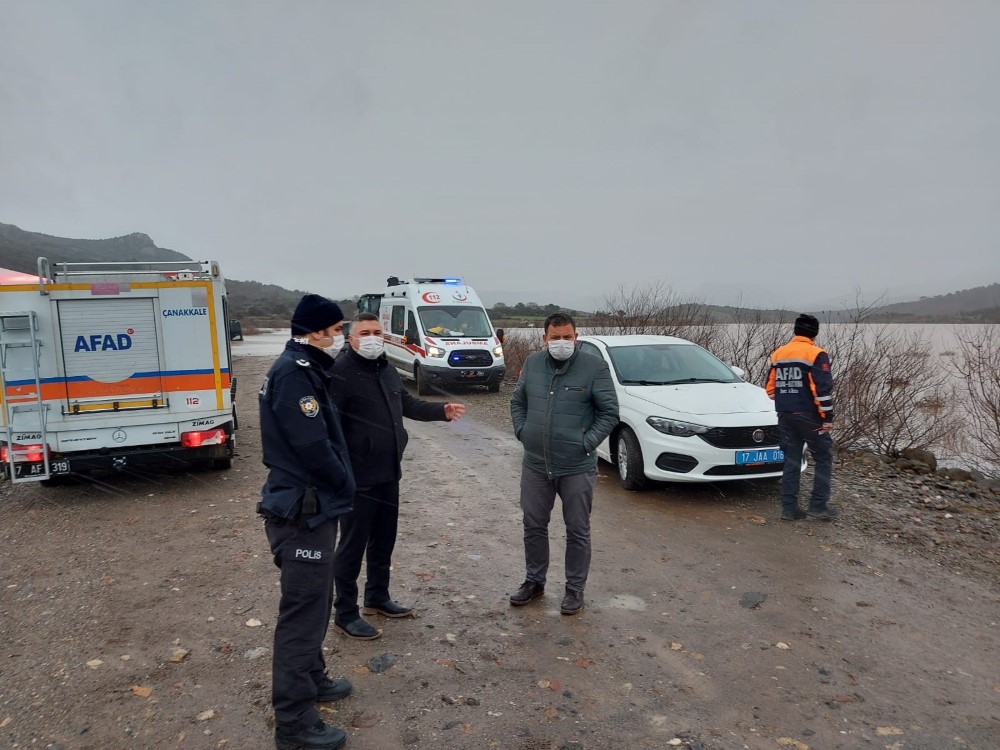 Çanakkale'nin Ayvacık ilçesinde korkunç bir olay meydana geldi. İlçe merkezinden, çalıştıkları Kırca köyündeki Rüzgar Enerji Santrali'ne giden biri kadın 2 kişinin bulunduğu otomobil, saat 07.30 civarlarında Ayvacık Barajı yanındaki toprak yoldan geçerken kayarak suya kapıldı. Araçlarının suya kapılmasının hemen ardından araç içerisinden 112 acil Çağrı merkezine telefon ederek yardım isteyen 2 kadın kayboldu. Araç ile birlikte kaybolan 2 kadın için arama çalışmaları başlatıldı. İhbar üzerine bölgeye giden Ayvacık İlçe Jandarma Komutanlığı ekibindeki 2 asker, baraj suyu içinde ışıkları yanan bir araç gördüğünü söyledi. Bu bilgi doğrultusunda bölgeye AFAD, UMKE, 112 Acil Sağlık, Deniz Polisi ve Sahil Güvenlik ekipleri sevk edildi. Yardım talebinde bulunan kişinin telefonun son olarak baraj yanından geçen ve sular altında kalan toprak yolda sinyal verdiği belirlendi. Dalgıçlar, baraj suyunda arama yaparken, AFAD' a ait bir zodyak bot da çalışmalara katıldı. Ayvacık Kaymakamı Cevat Çelik de arama kurtarma çalışmalarını bizzat yönetti. Ayvacık Belediye Başkanı Mesut Bayram, Ayvacık Barajı'na bir aracın düştü ihbarı yapılması üzerine bölgede başlatılan çalışmaları olay yerine gelerek inceledi. Çalışmalar hakkında bilgi alan Bayram, aracın bulunması için belediye imkanlarının seferber edildiğini söyledi. Bayram, "İhbar geldiği andan itibaren büyük bir titizlikle çalışmalar sürüyor. Belediye olarak imkanlarımızı seferber ettik. Çalışmalara katılan ekiplere sıcak çay ve ısıtıcı desteği sağlıyoruz. Umarız çalışmalar en kısa sürede neticelenir ve sağ salim vatandaşlarımıza ulaşırız." dedi.