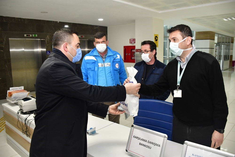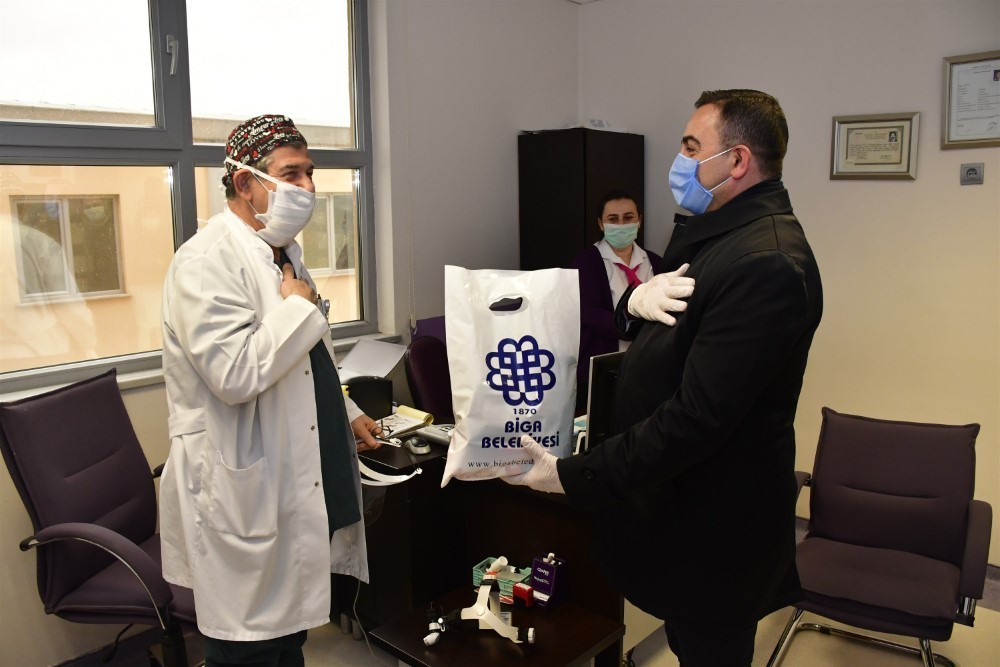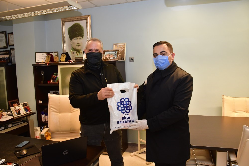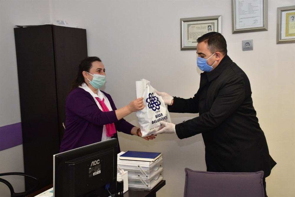 Biga Belediyesi, Koronavirüs (Kovid-19) tedbirleri kapsamında kamu çalışanlarına hijyen paketi dağıttı.