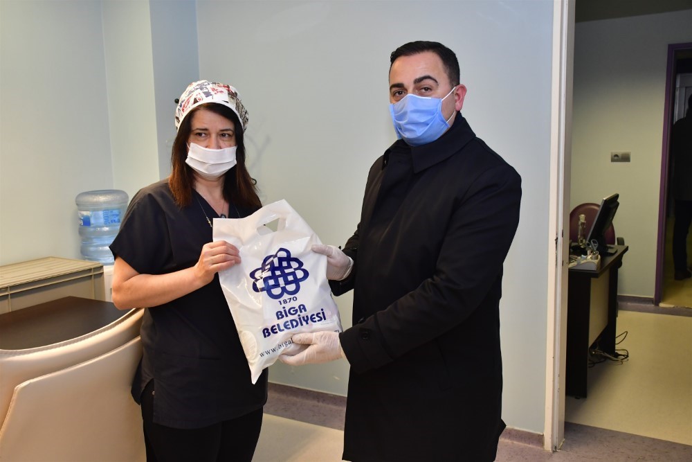 Biga Belediyesi, Koronvirüs salgınına karşı dört koldan çalışmalarını sürdürürken, kamu dayanışması içinde hazırladığı 1000 adet hijyen paketini kamu personeline dağıttı. Biga Belediye Başkanı Bülent Erdoğan, ziyarette bulunduğu Biga Devlet Hastanesi, Özel Biga Can Hastanesi, Biga İlçe Emniyet Müdürlüğü, Biga İlçe Jandarma Komutanlığı ve Biga İlçe Sağlık Müdürlüğü’nde kamu personeline sosyal mesafeyi koruyarak hijyen paketlerini verdi.Çalışmalarında kolaylıklar ve sağlıklı günler dilediği kamu personeli ise, Başkan Erdoğan’a teşekkür etti. Kamu dayanışmasıyla birlik ve beraberlik içinde hareket edildiğine vurgu yapan Başkan Erdoğan, “Milletimizin sağlığı, huzuru ve güvenliği için 7 gün 24 saat fedakarca çalışan Emniyet, Jandarma ve Sağlık ekiplerimize 1000 adet hijyen paketi dağıtımında bulunduk. Kamu dayanışmasının önemini bu günlerde daha fazla hissediyoruz. Kamu çalışanlarımıza minnettarız, her zaman onların yanınızdayız” dedi.