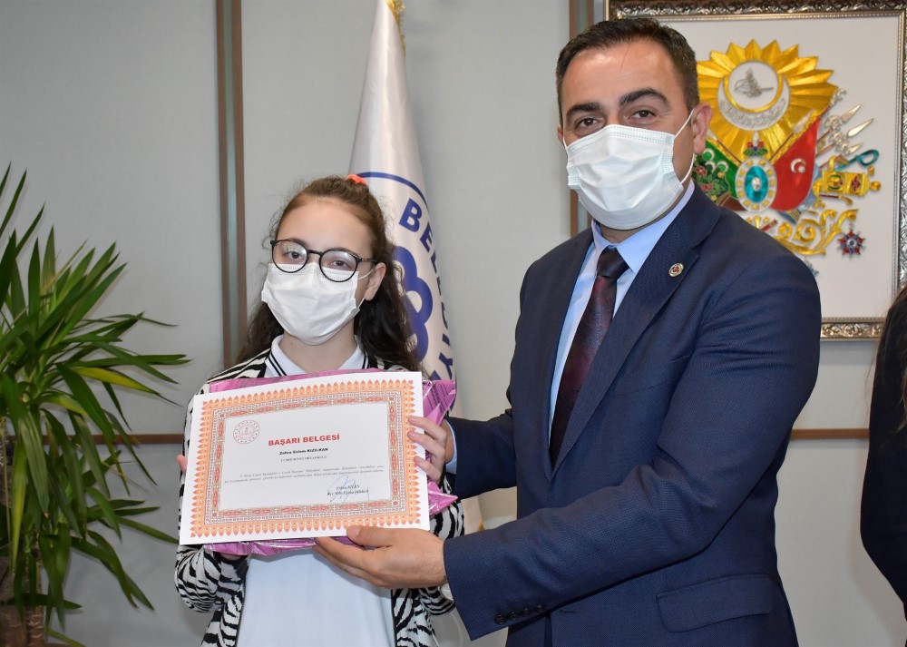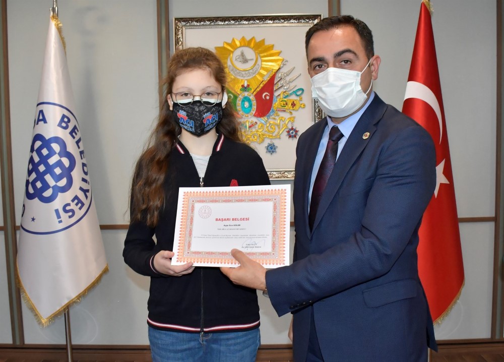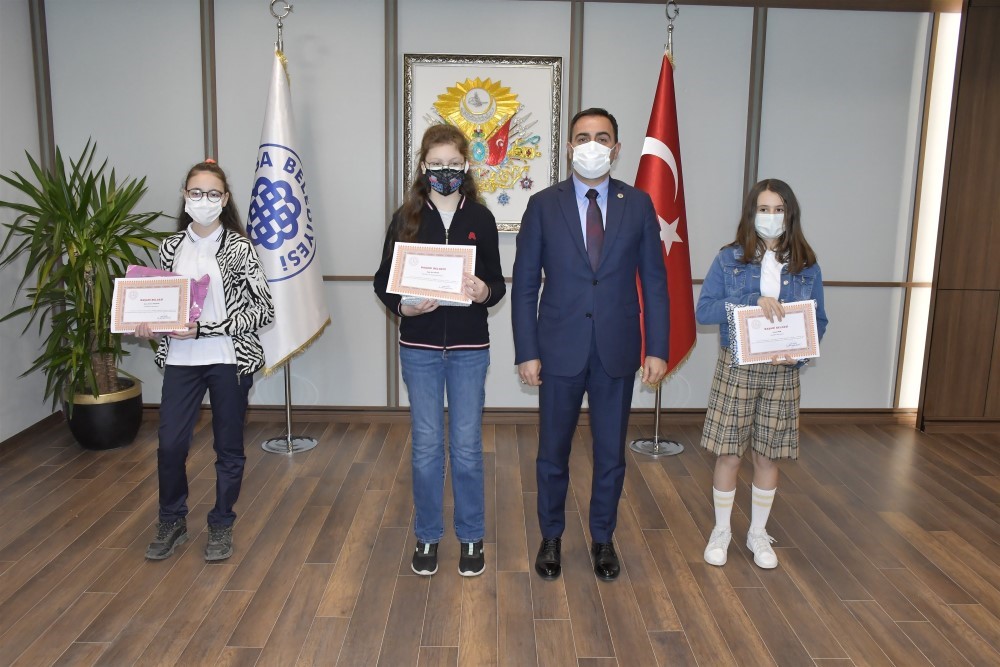 Biga Belediyesi ve Biga İlçe Milli Eğitim Müdürlüğü işbirliğiyle düzenlenen “23 Nisan’ım” konulu ilkokullar arası resim ve ortaokullar arası şiir yarışmasında dereceye giren öğrenciler için Biga Belediyesi’nde ödül töreni gerçekleşti. Programa, Biga Belediye Başkanı Bülent Erdoğan, Biga İlçe Milli Eğitim Müdürü Erkan Bilen, okul müdürleri, öğretmenler ve ödül kazanan öğrenciler katıldı. Programda bir konuşma yapan Biga Belediye Başkanı Bülent Erdoğan, Millet egemenliğinin temellerinin atıldığı ve Gazi Mustafa Kemal Atatürk tarafından tüm dünya çocuklarına hediye edilen 23 Nisan’ın çok değerli olduğunu ifade ederek düzenlenen yarışmada dereceye giren öğrencileri tebrik etti. Dereceye giren öğrencilerden birinci olanlara tablet, ikincilere akıllı bileklik ve üçüncülere ise kablosuz kulaklık ile birlikte başarı belgesi hediye edildi. İlkokullar arası resim yarışmasında ilçe birincisi olan Yeniceköy İlkokulu öğrencisi Aslı İnal’a, ikinci olan Cumhuriyet İlkokul öğrencisi Karen Cankurt’a ve üçüncü olan Balıklıçeşme İlkokulu öğrencisi Elif Aydemir’e ödüllerini Biga İlçe Milli Eğitim Müdürü Erkan Bilen verdi. Ortaokullar arası şiir yarışmasında ilçe birincisi olan Hamdibey Ortaokulu öğrencisi Fatma Ekim’e, ikinci olan Özel Biga Açı Koleji Ortaokulu öğrencisi Ayşe Ece Güler’e ve üçüncü olan Cumhuriyet Ortaokulu öğrencisi Zehra Eslem Kızılkan’a ise ödüllerini Biga Belediye Başkanı Bülent Erdoğan takdim etti. Programın ardından, Bigalı Mehmet Çavuş ile 23 Nisan kapsamında gerçekleşen resim, şiir ve kompozisyon yarışmalarında dereceye giren eserler için düzenlenen serginin açılışı yapıldı. Başkan Erdoğan, öğrencilerle birlikte sergiyi gezerek sohbet etti ve eserleri inceledi.