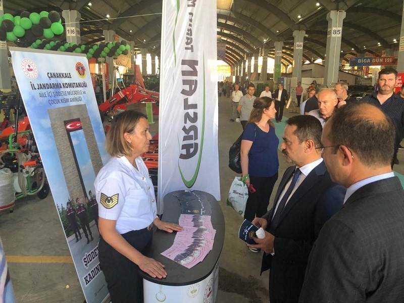 Biga Gıda, Tarım, Hayvancılık ve Teknolojileri Fuarında Aile içi ve kadına yönelik şiddetle mücadele ile trafik eğitimi faaliyetleri hakkında vatandaşlara bilgi veren stantları ziyaret eden Vali İlhami Aktaş, Jandarma personelinden bilgi alarak, çalışmalarında başarılar diledi.İl Jandarma Komutanlığı tarafından açılan, Trafik Şube standında çiftçilere güvenli traktör kullanımı ve emniyet kemeri kullanma konularında bilgi broşürü dağıtılarak bilgilendirme faaliyetinde bulunuyor, ayrıca  Aile İçi Şiddetle Mücadele ve Çocuk Kısım Amirliği tarafından açılan stantta vatandaşalara "Kadına El Kalkamaz" ve "KADES"  broşürleri dağıtımı yapılarak bilgilendirme yapılıyor.