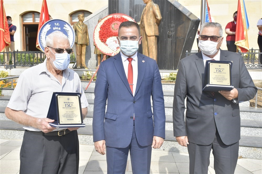 Biga Kaymakamlığı ve Biga Belediyesi’nin Hükümet Meydanı’nda Atatürk Anıtı’na çelenklerinin sunulmasıyla başlayan törene, Biga Kaymakamı Mustafa Can, Biga Belediye Başkanı Bülent Erdoğan, Biga Cumhuriyet Başsavcısı Bahri Yalçinöz, Gaziler, okul müdürleri, daire amirleri, siyasi parti temsilcileri ve vatandaşlar katıldı. Tören, Koronavirüs (Kovid-19) tedbirleri kapsamında gerçekleştirildi. Saygı duruşu ve İstiklal Marşı’nın okunmasının ardından Biga Belediye Başkanı Bülent Erdoğan, törende yaptığı konuşmada, “Milli Mücadele yılları bütün sıkıntıları ve zorlukları ile bizim gururla andığımız ve ecdadımızı hayırla yâd ettiğimiz yıllardır. Bizlere bu toprakları vatan kılan, vatan kalması için gözünü kırpmadan şehadete yürüyen ecdadımızın fedakarlıklarını anlayarak daha çok çalışacağız” dedi.Başkan Erdoğan, konuşmasını şu sözlerle sürdürdü. “Biga’mızın Milli Mücadele Destanının 98. Yıldönümünü her yıl artan minnet ve kıymet duygularıyla idrak ederken, tüm dünyayı ve ülkemizi etkisi altına alan pandemi nedeniyle bir araya gelerek çeşitli etkinliklerle kutlayamamanın üzüntüsünü yaşıyoruz. Ancak içimizde hiçbir zaman eksilmeyen birlik ve beraberlik duyguları, coşku ve heyecanla pandemi tedbirleri kapsamında bir dizi program gerçekleştiriyoruz. Bu yıl hem Biga’nın düşman işgalinden kurtuluşunun 98. yılını hem de Biga Belediyesi’nin 150. yılını kutlayarak çifte mutluluk yaşıyoruz. Birinci Dünya Savaşı’nın ardından Türk milletinin 1919 yılında Samsun’da Gazi Mustafa Kemal Atatürk’ün liderliğinde başlattığı istiklal mücadelesi tüm yurdun olduğu gibi Biga’mızın üzerindeki kara bulutları da dağıtmaya başlamıştı. 30 Ağustos’ta Başkomutanlık Meydan Muharebesinde düşmanın tepesine indirilen yumruk, ülkenin her yerinde hissedilmiş, Türk Ordusu ve yerel silahlı güçlerin de desteğiyle iki yıldan fazla Yunan işgalinde kalan Biga’mız 18 Eylül 1922’de Yunan ve İngiliz askerini vatan topraklarından çıkarmıştı. Türk Ordusu 18 Eylül akşamı Hükümet binasından Yunan bayrağını indirip şanlı Türk bayrağını göndere çekmiştir. Geçmişini bilmeyen milletler geleceklerine asla yön veremezler. Geçmişini unutan milletler yok olmaya mahkumdur. Bizler geçmişimizi unutmadan çocuklarımızla, gençlerimizle, gelecek neslimizle el ele kol kola emin adımlarla yürüyeceğiz. Bizlere bu toprakları vatan kılan, vatan kalması için gözünü kırpmadan şehadete yürüyen ecdadımızın fedakarlıklarını anlayarak daha çok çalışacağız. Devletimizin her alanda hedeflerimize ve hayallerimize uygun güce kavuşması için gece gündüz çalışmaya devam edeceğiz. Geçmişte olduğu gibi bugün de sınırlarımızda ve çevremizde olup bitenleri iyi gözlemleyeceğiz. Yüzde 20'den yüzde 70'lere çıkan yerli ve milli savunma sanayimiz gösteriyor ki bu ülkede inanç, güven, manevi kuvvet ve milli şuur milletimizin özgürlük ve bağımsızlık arzusudur. Bizler, halkımızın verdiği destekle çıktığımız kutlu hizmet yolculuğunda ilçemiz ve ülkemiz için, büyük ve güçlü Türkiye sevdasıyla çalışıyoruz. Milli Mücadele yılları bütün sıkıntıları ve zorlukları ile bizim gururla andığımız ve ecdadımızı hayırla yâd ettiğimiz yıllardır. Bu ülke, bu millet, bu topraklar tarih boyunca çok çetin günlerden geçtiği gibi, bu zorlu günleri de atlatarak sağlıklı günlere ulaşacaktır. Bu duygu ve düşüncelerle Osmanlı Devleti sonrasında Türkiye Cumhuriyeti’nin kuruluş aşamasının bir yapı taşı olan Biga’mızın düşman işgalinden kurtuluşunda önemli rol oynayan başta Gazi Mustafa Kemal Atatürk olmak üzere, silah arkadaşlarına ve tüm şehitlerimize Allah’tan rahmet diliyorum. Gazilerimiz ve tüm isimsiz kahramanlarımızı rahmetle, minnetle ve dua ile anıyorum. Biga’mızın düşman işgalinden kurtuluşunun 98. yıldönümü ve Biga Belediyemizin 150. kuruluş yıldönümü kutlu olsun.” Tören, Dumlupınar Ortaokulu öğrencisi Arda Çetin’in ‘Vatan İçin’ adlı şiirini okuması ve Biga Belediyesi’ne hizmet etmiş en yaşlı emekli personeller Yaşar Özdemir, Nuri Çorlu, Nuri Çiftçi, Sadettin Yaşar ve Hüseyin İdi’ye Biga Kaymakamı Mustafa Can, Biga Belediye Başkanı Bülent Erdoğan ve Biga Cumhuriyet Başsavcısı Bahri Yalçinöz tarafından plaket takdim edilmesiyle sona erdi.