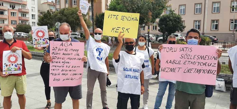7 Ağustos Cuma günü, Kamu Emekçileri Sendikaları Konfederasyonu’na bağlı aralarında üyesi Eğitim - Sen’in de olduğu üyeleri Çalışma ve Sosyal Bakanlığı ile Memur- Sen arasında imzalanan Toplu İş Sözleşmesini protesto etmek amacı ile Eğitim-Sen, KESK ve diğer işkollarındaki KESK üyeleri iş bırakma eylemi gerçekleştirdi.