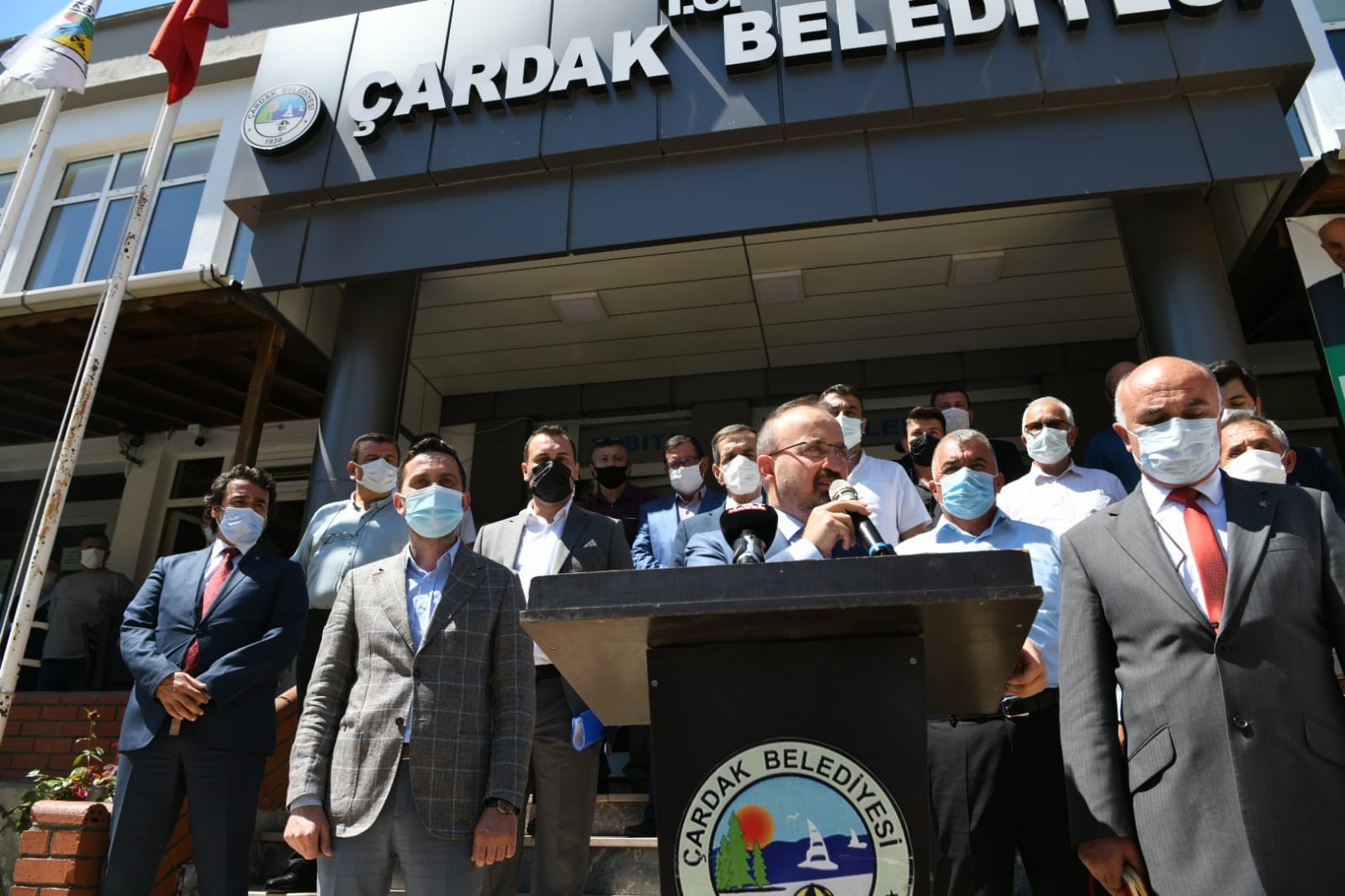 AK Parti Grup Başkanvekili ve Çanakkale Milletvekili Bülent Turan, Çardak’ta ilk kazması vurulan doğalgaz çalışmalarını yerinde inceledi. Turan, daha sonra Çardak Belediyesi’ni ziyaret ederek Belediye Başkanı Metin Semerci ile bir araya geldi. “Çanakkale’mizin her yerine doğalgazın gelmesi için çalışmalarımıza devam ediyoruz.” diyen Turan ziyarete ilişkin şunları söyledi: “Çardak bir belde olmanın ötesinde Çanakkale’mizin incisi olmaya aday bir merkezdir. Bölge, sadece 2500 yıllık mitolojik mirasıyla değil, bunun yanında kültürel, doğal ve turistik tüm çekicilikleriyle bugün kollarını açmış konumda. Güzel beldemiz Çardak, Türklerin Rumeli’ye geçtiği yer olarak tarihteki şanlı yerini aldı. Daha önce Lapseki’nin büyük gayretleri, Meclis kararı, teminat ödemesi gibi adımlar sonucunda doğal gaz getirebilmiştik. Lapseki’mizin beldesi Çardak’ımızın da bu hattan istifade edebilmesi en büyük amacımızdı. Çardak’a doğal gaz gelmesi hususunda Milletvekilimiz Jülide İskenderoğlu’yla beraber, ilgili kurumlarla görüşerek destek verdik. Söz konusu hemşehrilerimize hizmetse siyasi parti ayrımı gözetmeden omuz vermeye gayret ediyoruz. Aynı duruşu CHP’li siyasetçilerden ve belediyelerden de bekliyoruz. Zaman zaman CHP’li belediyelerin işten çıkarmalarına ve belediyelerin hizmette ayrım yaptıklarına şahit oluyoruz. Bu doğru bir anlayış değil. Farklı görüşlere sahip olsak da, önceliğimiz insanımıza hizmet olmalı. Sayın Semerci’ye yapıcı yaklaşımından ve misafirperverliğinden dolayı teşekkür ediyoruz. Ayrıca bugün 19 Mayıs’ta Çardak’ımıza Çardak Kapalı Spor Salonu ve Konferans Salonu yapılmasının da müjdesini vermek istiyoruz. Gençlik ve Spor Bakanlığı’mız ve İl Özel İdaresi tarafından yapılacak bu önemli tesis, 1600 m² kapalı alan ve 270 m² açık alan olmak üzere toplam 1870 m² kullanım alanına sahip olacak. İçinde 150 kişilik seyirci kapasiteli 730 m² kapalı spor salonu, kafeteryası, konferans salonu gibi bölümler yer alacak. Engelli dostu bir bina. Yapımına en kısa zamanda başlanması planlanıyor. Şimdiden hemşehrilerimize hayırlı olmasını diliyoruz.”