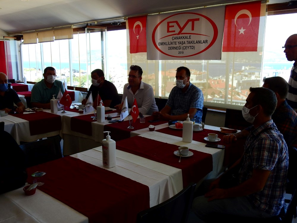 Çanakkale Emeklilikte Yaşa Takılanlar Derneği Başkanı Murat Çağlayan Dernek Yönetim Kurulu üyeleri ile birlikte basın toplantısı düzenledi. Çanak Otelde gerçekleştirilen basın açıklamasında EYT Derneği Başkanı Murat Çağlayan EYT mağdurlarını ortaya çıkaran kanunun T.B.M.M’ de kabul edilişinin 21. Yılı olduğuna dikkat çekti. EYT sürecinin 21 yıllık bir hak arama mücadelesi olduğunu da ifade eden Çağlayan EYT’ lilerin mağduriyetinin artık giderilmesini istediklerini söyledi. Açıklamasına EYT’ nin ne olduğunu anlatmak ile başlayan Çağlayan “EYT’ liler 08.09.1999 tarihinden önce iş hayatına atılıp çalışmaya başlayan, SGK sistemine girişi olan ve devletiyle o dönemin iş kanuna göre sözleşme imzalamış farklı siyasi görüşlerden olan işçi, emekçi, esnaf,çiftçi, memurdur. Yani 21 yıllık mağduriyet yaşayanlardır, Türkiye Cumhuriyeti Vatandaşı ,yani halkın ta kendisidir.” dedi. Çağlayan açıklamasında “Eyt bir Türkiye gerçeğidir. Biz Emeklilikte Yaşa Takılanların anamızın ak sütü gibi helal olan hak edilmiş taleplerini Erken Emeklilik, Emeklilikte Yaşı Tutmayanlar, Türemiş, Boş İşler ,Ekonomiye Yük diyerek algı yaratılması ve geniş kitleleri ilgilendiren bu mağduriyetin yok görülmesi doğru değildir. Bizler daha önce de yapmış olduğumuz açıklamalarda üstüne basa basa ve altını çize çize söyledik ve yine söylüyoruz. Bizler ERKEN EMEKLİLİK DEĞİL, bir lütuf değil, sadece 8.9.1999 tarihinde çıkarılan 4447 sayılı kanunun geriye doğru işletilerek yarattığı mağduriyetin giderilmesini, 1999 yılı öncesi çalışma hayatına başladığımız haklarımızın ne bir eksik ne bir fazla, sadece haklarımızın iadesini talep ediyoruz. Sosyal ve Hukuk devletinde vatandaşının aleyhinde geriye doğru işletilen bir kanun olamaz, kabul edilemez. Çıkarılan kanun çıktığı tarih ve sonrasını kapsamalıdır.4447 sayılı kanun 1999 tarihinde çıkarılmıştır. Ama devlette devamlılık esastır ve geniş kitleleri ilgilendiren bu büyük 21 yıllık mağduriyet görmezden gelinmemelidir.” İfadelerine yer verdi.