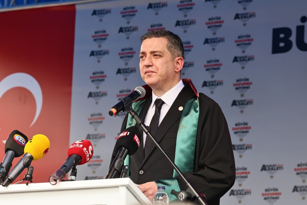 Türkiye Barolar Birliği (TBB), adaletin ve meslek onurunun yanında durmak adına 27 Nisan'da Ankara Anıtpark'ta muazzam bir gösteri düzenledi. Binlerce avukatın katıldığı miting, Türkiye'nin dört bir yanından gelen hukukçuların bir araya gelerek güçlü bir ses çıkardığı önemli bir etkinlik gerçekleşti. Mitinge, Ankara Büyükşehir Belediye Başkanı Mansur Yavaş, TBB Başkanı Av. R. Erinç Sağkan, Baro Başkanları ve yüzlerce avukatın yanı sıra Çanakkale'den de Baro Başkanı Av. Hande Keskin ve çok sayıda avukat katılarak destek verdi. Türkiye'nin dört bir yanından gelen hukuk örgütlerinin ve mitinge destek veren hukukçu milletvekillerinin tek tek anons edilerek miting alanına giriş yapması, etkinliğin önemini bir kez daha vurguladı. Anıtpark'ta binlerce avukat, Gazi Mustafa Kemal Atatürk ve silah arkadaşları ile ebediyete intikal etmiş tüm avukatlar için bir dakikalık saygı duruşunda bulunarak İstiklal Marşı'nı okudu. Ardından, TBB Başkanı Av. R. Erinç Sağkan, mitingde bir açıklama yaparak katılımcılara seslendi. Sağkan, yaptığı konuşmada, avukatların adaletin ve meslek onurunun savunucusu olduğunu vurgulayarak “Biz avukatız ve tarafız; Haksızlığın kimden geldiğine ve kime dönük olduğuna bakmaksızın adalete erişimlerine engel olunanların ve sesi kısılmaya çalışılan kim varsa onun yanındayız. Biz avukatız; adaletten başka kimsesi olmayan herkes için, istismara uğrayan çocuklar için, çocuk işçiler için, emeği sömürülen yurttaşlarımız için, kitlesel bir cinnet hâlinin hedefi olan kadınlar için, kurutulmuş göller ve kesilen zeytinlikler için, doğa için, hayvanlar için ve kısaca, hukukun tesisinden başka hiçbir ihtimali olmayan herkes için vekiliz ve 'vekaleten' buradayız. Biz avukatız; bugüne kadar hep 'Herkes için Adalet, Adalet için Avukat' şiarıyla hareket ettik, bugün bu meydanı dolduran her bir meslektaşım bu şiarın vücut bulmuş halidir. Evet biz avukatız; duruşma salonlarında, emniyette veya savcılık sorgularında hep 'vekaleten' konuşmaya alışığız. Ama bugün 'Savunma' günü; bugün savunmanın, avukatın, 'Avukat için de Adalet' demenin, vekaleten değil asaleten konuşmanın günü! Bugün 190 bin avukatın konuşma günü! Üzerimizde bizi birbirimize eşitleyen düğmesiz cübbelerimize iyi bakınız. İşte bu cübbe; yağmurda, soğukta, direnişte ama en çok umutta vücut buldu. Bu cübbe, barolarımızın bölünmemesi, mesleğimizin itibarının korunması için omuz omuza direnirken, barınağımız ve çatımız oldu. Bu cübbe, bütün darbe dönemlerinde darbecilere karşı yurttaşlar için kalkan, ortadan kaldırılmaya çalışılan hak ve özgürlükler içinse son sığınak oldu. Bu cübbe sadece ülkemizde değil bugün İsrail’in Gazze’de yaptığı katliama, soykırıma karşı Uluslararası Ceza Mahkemesi nezdinde yaptığımız başvuru ile Filistinli sivillerin, kadınların ve çocukların da kalkanı oldu" dedi.