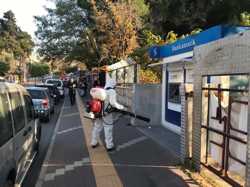 Salgın hastalık riski nedeni ile çalışmalarını aralıksız sürdüren Çanakkale Belediyesi, rutin olarak gerçekleştirdiği dezenfeksiyon çalışmalarına devam ediyor. Covid-19 salgını sürecinde kent yaşamının olumsuz etkilenmemesi amacı ile pandemi tedbirleri doğrultusunda çalışmalarına devam eden Çanakkale Belediyesi ekipleri, belediye hizmet binalarının yanı sıra kentlilerin yoğun olarak kullandığı banka ATM’lerinde de dezenfeksiyon çalışması gerçekleştirdi. Temizlik İşleri Müdürlüğü ekiplerince gerçekleştirilen dezenfeksiyon çalışması kapsamında; belediye hizmet binaları, Sosyal Yaşam Evleri, Barbaros Kütüphanesi, Sağlıklı Yaşam Merkezi, Belediyespor Tesisleri, Sosyal Market, Altın Yıllar Yaşam Merkezi ve Çocuk Kültür Evi ile ATM’ler dezenfekte edildi.