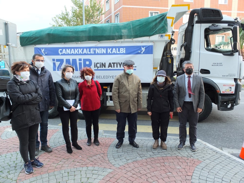 İzmir’ de Meydana gelen 6.6 şiddetindeki deprem felaketinin ardından Çok sayıda vatandaş hayatını kaybetmiş çok sayıda vatandaşımızda depremden yaralı olarak kurtarılmıştı. Yaşanan deprem felaketinin ardından Çanakkale Belediyesi’ de depremden sağ kurtulan ancak evlerini kaybeden deprem zedeler için çalışma başlattı. Çalışma kapsamında İzmir Büyük Şehir Belediyesi yardım koordinasyon merkezi görevlilerinden deprem zedelerin ihtiyaç duyduğu malzeme listesini talep eden Çanakkale Belediyesi gönderilen yardım ihtiyaç listesine göre hem Çanakkaleli bağışçılardan hem de Çanakkale Belediyesi Çalışanlarının desteği ile ihtiyaç duyulan malzemelerden oluşan yardımları hazır ettiler. Hazırlanan yardımlar kamyona yüklendi. Üzerinde “ Çanakkale’nin kalbi İzmir için atıyor parkartının asıldığı yardım kamyonu Çanakkale belediyesi önünden İzmir’ e uğurlandı. Uğurlanma törenine katılan Çanakkale Belediye Başkanı Ülgür Gökhan Yaptığı açıklamada “Acil yardımlar kapsamında İzmir için çok ciddi yardımlar yapılıyor. Devlet yardım ediyor, AFAD yardım ediyor, Belediye’nin imkanları var ama o andaki ihtiyaçlar karşılandı fakat orada yaşam devam ediyor. Özellikle çadırlarda yaşam devam ediyor. Henüz başka bir eve geçme ya da prefabrik bir eve geçilmiş değil. Dolayısı ile o yaşam içerisinde insanların bir takım ihtiyaçları var. Bununla ilgili İzmir Büyükşehir Belediyesi bir ihtiyaç listeyi çıkarttı. Biz de o liste üzerinden kamyondaki malzemeleri temin ettik. Bu malzemeleri özellikle bağışçılarımız verdi. Belediye çalışanları katkı verdi. Burada çok çeşitli malzemeler var örneğin Tulum. Soğukta sıcak tutacak uyku tulumu. Bebek bezleri çok önemli. Kazak, ayakkabı gibi, dezenfekten gibi biliyorsunuz Covid var. Dolayısı ile listeye göre topladığımız malzemeleri İzmir’e yolluyoruz. Belediyeler yardımları paylaşıyorlar. Biz de katkıda bulunmak için biz de yardımları gönderiyoruz. Bunu anlatmamın sebebi duyuru olsun diye değil, duyarlılığı devam ettirmeliyiz. Şu anda çadırlarda yaşayan insanlara destek olmak isterlerse ve Belediyemize müracaat ederlerse biz de yardımları İzmir’e ulaştırırız. Ben başta Belediye personeli olmak üzere destek veren tüm hemşehrilerime teşekkür ederim” dedi. Konuşmanın ardından yardım kamyonu İzmir’ e doğru yola çıktı.