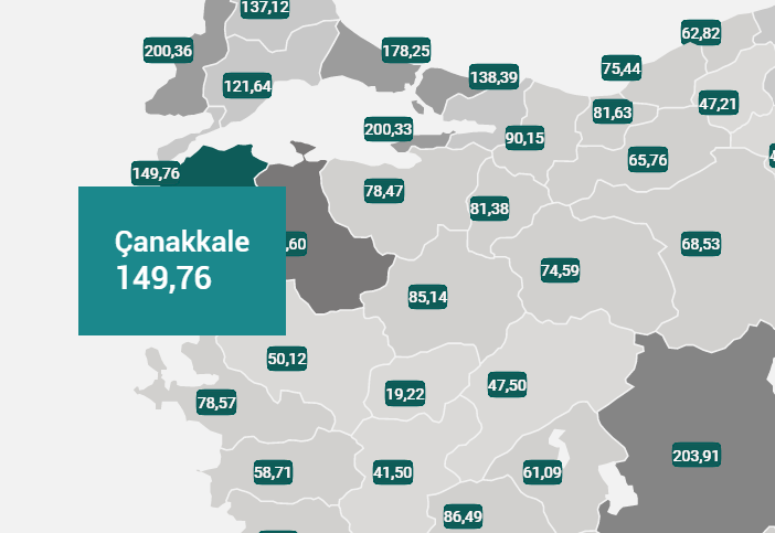 Çanakkale vaka sayısında 149.76’ ya yükseldi