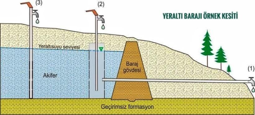 Tarım ve Orman Bakanlığı tarafından kuraklık t6ehlikesine karşı başlatılan ““Yer Altı Baraj ve Suni Besleme Tesis” projesi projesinin 2023 yılında tamamlanmasının ardından yaz aylşarında can suyu olarak kullanılacak ve 600 bin kişiye içme suyu sağlayacak. Tarım üretiminde ise yaz aylarında ürünlerin sulanmasında tarım arazisine can suyu olacak.100 adet tesis bittiğinde yaklaşık 40 milyon metreküplük suyu yerin altına indirmek. Bu sayede 600 bin kişinin içme suyu sağlanmış olacak. Ayrıca 60 bin dekarlık tarım arazisi sulama suyuna kavuşacak ve toplamda da 45 milyon liralık bir gelir artışının sağlanması hedefleniyor. Proje ile buharlaşma kaynaklı su kayıplarının önlenmesi amaçlanıyor.