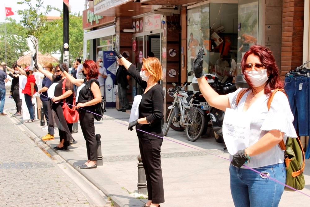 CHP’Lİ KADINLAR BU SEFER KADIN CİNAYETLERİNİ SUSARAK PROTESTO ETTİ