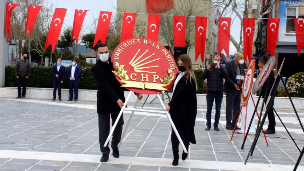 Saygı duruşunun ardından günün anlam ve önemini belirten bir konuşma yapan Cumhuriyet Halk Partisi İl Başkanı Metin Ümit Ural “Başta Mustafa Kemal Atatürk Olmak Üzere, Anadolu’nun dört bir yanından gelerek savaşa katılan, binlerce kahraman Çanakkale’de bağımsızlık ve özgürlük uğruna amansız bir mücadele vererek cepheden geriye dönmeyi bile düşünmemişlerdir. Savaşa katılan asker gücü ve silah gücü yönünden emperyalist güçlerini ordularına karşı çok daha dezavantajlı olmalarına rağmen vatan ve özgürlüğün duygusuna olan inancın üstünlüğü, savaşın zaferle sonuçlanmasına yeterli gelmiştir. Şimdi uğruna mücadele ettikleri bu topraklarda koyun koyuna yatmaktadırlar. Milli Mücadele, 1915’te kazanılan zafer sayesinde başlatılmış ve sonucunda bugün üzerinde birlikte barış içerisinde yaşadığımız Cumhuriyet Kurulmuştur. Çanakkale Savaşları, tüm emperyalist oyunlarının bozulduğu, özgürlüğün galip geldiği ve savaşın içinde barışın çıktığı bir zaferdir. Çanakkale savaşlarından sonra “yurtta sulh, dünyada sulh” diyerek dünyadaki bir çok ulusun saygısını kazanan Ulu Önder Mustafa Kemal Atatürk doğmuştur. Çanakkale, dünyanın bir ucundan birbiri ile savaşmak için cepheye gelen askerlerin arkadaş olduğu, çocukları ve torunlarının da kardeş olduğu yerdir. Çanakkale, tüm emperyalist oyunların bozulduğu, özgürlüğün galip geldiği ve savaşın içinden barışın çıktığı yerdir. Çanakkale, Anadolu’nun işgal altında olduğu, İngiliz, Fransız ve İtalyanların harita üzerinde paylaşım yaptıkları şartlarda Laik, demokratik Cumhuriyetin ön sözünün yazıldığı yerdir. Çanakkale, emperyalizme karşı verilen mücadelenin, cesaretin, özgürlüğün, umudun ve bağımsızlığın en güzel göstergesidir. Çanakkale Ruhu, 21’inci Yüz Yıla sadece geçmişimiz değil, aynı zamanda geleceğimizdir. 106’ıncı yılını kutladığımız Çanakkale Deniz Zaferi, Türkiye Cumhuriyetinin ön sözüdür. Ülkemizin içinde bulunduğu kötü koşulların yaşandığı bu günlerde daha iyi bir yaşam için mücadelemiz hiçbir zaman son bulmayacaktır. Ülkemizi daha laik, demokratik ve çağdaş kılabilmemiz için her geçen gün vereceğimiz mücadelenin önemi daha da artmaktadır. Gelecek güzel günler için birliktelik ve dayanışma duygularını her zaman ön planda tutacağımız inancı ile bizlere Türkiye Cumhuriyetini bize miras bırakan Mustafa Kemal Atatürk ve Silah arkadaşları başta olmak üzere, ülkemizin birlik ve bütünlüğü için hiç düşünmeden canını veren bütün şehitlerimizi şükran ve rahmetle anıyorum” dedi. Ural’ın konuşmasının ardından alternatif çelenk koyma programı da sona erdi.