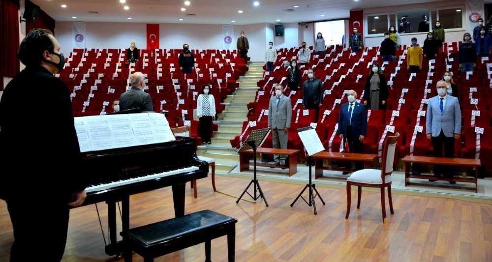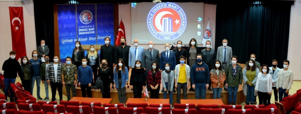 YÖK nezdinde alınan izinlerin ve akademik kadro çalışmalarının tamamlanması sonucu bu yıl öğrenci kabul etmeye başlayan ve 20 öğrencilik kontenjanının tamamının dolduğu Çanakkale Onsekiz Mart Üniversitesi (ÇOMÜ) Devlet Konservatuarının, 2020-2021 Eğitim-Öğretim yılında ilk kez öğrenci alması nedeniyle, Troia Kültür Merkezinde bir program düzenlendi. ÇOMÜ Rektörü Prof. Dr. Sedat Murat, Rektör Yardımcısı Prof. Dr. Süha Özden, Eğitim Fakültesi Dekanı Prof. Dr. Salih Zeki Genç, Devlet Konservatuarı Müdürü Dr. Öğretim Üyesi Yılmaz Küçüköncü ve akademisyenlerin katılımıyla düzenlenen program, saygı duruşu ve İstiklal Marşı’nın okunmasıyla başladı. Ardından, ÇOMÜ Devlet Konservatuarı’ndan Dr. Öğr. Üyesi Bahadır Çokamay, Öğr. Gör. Barış Karabulut, Öğr. Gör. Ulaş Çabuk tarafından bir müzik dinletisi gerçekleştirildi.