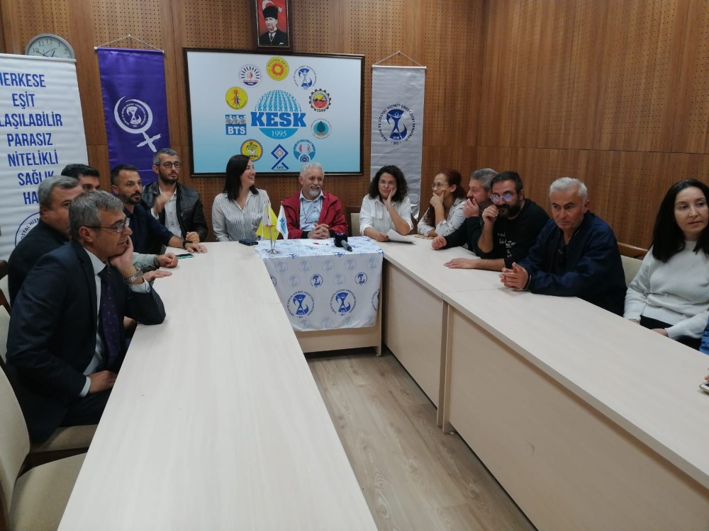 Sağlık ve Sosyal Hizmet Emekçileri Sendikası Eş Genel Başkanı Hüsnü Yıldırım Çanakkale Merkez ilçe ve beldelerinde sağlık ocaklarını ve hastaneleri ziyaret etmek ve sağlık çalışanları ile görüş alışverişinde bulunmak için Çanakkale’ye geldi. İki gün süren ziyaret ve istişarelerin ardından sağlık ve Sosyal Hizmet Emekçileri Sendikası Çanakkale Şube Başkanı Canan Çoşan eş başkan yardımcısı Yıldırım ve beraberindekiler ile birlikte basın toplantısı düzenledi. Çoşan basın toplantısında Eş Genel Başkanı Hüsnü Yıldırım ve beraberindekiler ile gerçekleştirilen çalışmalar ile ilgili bilgiler verdi Çoşan çalışmalar ile ilgili şunları söyledi. “Eş Genel Başkanı Hüsnü Yıldırım da bulunuyor. 2 gündür Çanakkale ve ilçelerinin birçok sağlık ve sosyal hizmet işyerini, hastanelerini gezdik. Çanakkale Tabip Odasını ziyaret ettik. Aile ve Sosyal Hizmetler İl Müdürü ve İl Sağlık Müdürüyle görüştük. Sağlık ve sosyal hizmet emekçilerinin sorunlarını yerinde gözlemledik ve ilk ağızdan dinledik. Bir kez daha gördük ve deneyimledik ki, sağlık ve sosyal hizmetler sistemi iflasın eşiğindedir. Çalışanlar mesleki, ekonomik ve psikolojik açıdan aşırı yıpranmış ve tükenmiş vaziyettedir. Hizmet alanlar umutsuz, çaresiz ve giderek daha da tahammülsüz haldedir. Mevcut haliyle bu sistem yetişmiş eğitimli, nitelikli insan ve işgücünü öğütür duruma gelmiştir. Yurttaşlara da vadedebileceği bir şey kalmamıştır. Bugün burada sahadan derlediğimiz sağlık ve sosyal hizmet sorunlarını bir kez daha ifşa edeceğiz. Umarız yönetim kademelerindekiler bu ifşaatlarımızı dikkate alır ve sorunun muhatapları olan bizlerle birlikte acil çözümler geliştirirler.”
