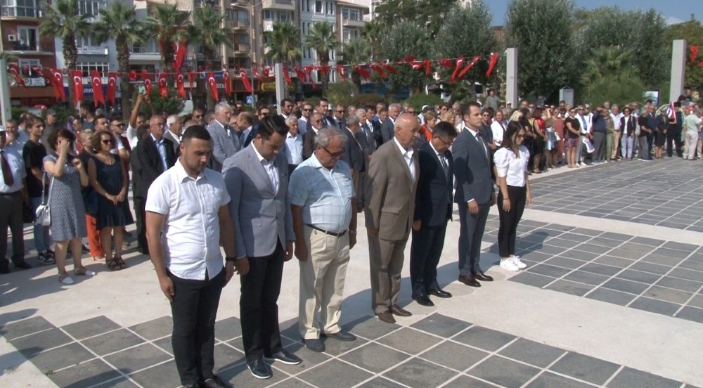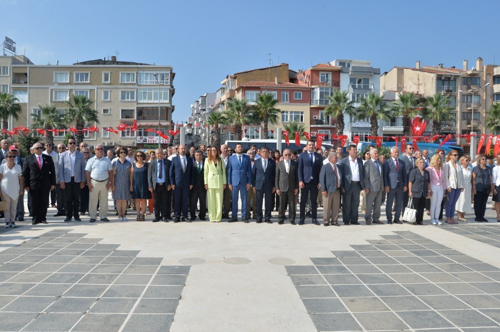 Cumhuriyet Halk Partisi alternatif töreni Atatürk heykeline çelen sunumu ve ardından saygı duruşu ile başladı. Törende günün anlam ve önemini belirten konuşmayı yapan Çanakkale Emekli Subaylar Derneği Başkanı Emekli Albay Eminettin Ergin 30 Ağustos Zaferinin Cumhuriyetin Tapusu olduğunu ifade ederek konuşmasında şunları söyledi. Başkomutan Mustafa Kemal Atatürk ‘ün önderliğinde kazanılan ve yüce Türk Milleti ile Kahraman Türk silahlı kuvvetlerinin  gücünü tüm dünyaya gösteren Şanlı 30 Ağustos Zaferimizin 100. Yıldönümünü gurur ile kutluyoruz.30 Ağustos Zaferi Ülkemizi parçalamak ve milletimizi esaret altına almaya çalışan devletlere karşı, tüm olanaksızlara rahmen yüce Türk Milletinin sarsılmaz azmi, yüksel iradesi,  vatanseverliği ve azmi ile kazanılmıştır. 30 Ağustos zaferi  ile kendisini tarih sayfasından silmek isteyenlere karşı, anlamlı,  ağır ve unutamayacakları bir ders vermiştir. 1 asır önce sayı ve silah olarak kendisinden çok çok üstün olan düşman karşısında yüreğindeki vatan sevgisi ve üstün cesareti ile Ülkesini kanının son damlasına kadar koruyacağına ve bugünde bu fedakarlığı ve üstün cesareti göstereceğine hiç süphe yoktur. Yeni Türkiye Cumhuriyetinin kurulmasına sebep teşkil eden ve sonucu bütün dünyada büyük yankı uyandıran tarihin akışını değiştiren büyük taaruz ve kazanılan büyük zafer Türk Milletimin bağımsızlığını, sonsuza kadar hür ve egemen yaşamasını sağlamıştır. Büyük taaruzu bizzat sevk ve idare eden Başkomutan Mustafa Kemal Atatürk 30 Ağustos’ta tarihin en büyük ve en kesin sonuçlu meydan muharebesini kazanmıştır. Kazanılan bu zafer ile Lozan anlaşması mağlup devletlere kabul ettirilmiş ve Türkiye Cumhuriyetinin temeli atılmıştır. Şimdilerde bazılarının söylediği gibi Lozan antlaşmasının gizli maddeleri söz konusu değildir. Lozan antlaşması Türkiye Cumhuriyetinin tapu senedidir.” dedi.