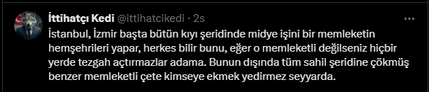 Özellikle sahil şehirlerinde belirli hemşehri gruplarının midye ve mısır satışına hâkim olduğu iddiaları da yorumlarda yer aldı. “Eğer o memleketli değilseniz sahil şeridinde size yer verilmez” şeklinde yapılan yorumlar, sokak ekonomisindeki adaletsizlik tartışmalarını tekrar gündeme getirdi.