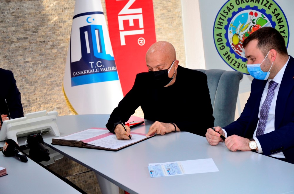 Bugün valilik toplantı salonunda, Dardanel Önentaş Gıda Sanayi A.Ş’nin Ezine OSB’ye yapacağı yatırımlar için protokol imzalandı. İmzalar için yapılan toplantıya, Çanakkale Valisi İlhami Aktaş, Ezine Kaymakamı, Dr. Hacı Arslan Uzan, Dardanel Önentaş Gıda Sanayi A.Ş Yönetim Kurulu Başkanı Niyazi Önen, Ezine Belediye Başkanı Güray Yüksel, ÇTSO Başkanı Selçuk Semizoğlu, Ezine OSB Müdürü Alper Altınok katıldı.İmzalar atıldıktan sonra, vali ve Niyazi Önen konuşma yaptı.Dardanel Önentaş Gıda Sanayi A.Ş Yönetim Kurulu Başkanı Niyazi Önen yaptığı açıklamada, bölgeye beş yıllık uzun vadeli yatırım planında her yıl 100 milyon olmak üzere 5 yılda 500 milyonluk yatırım yapacaklarını söyledi.