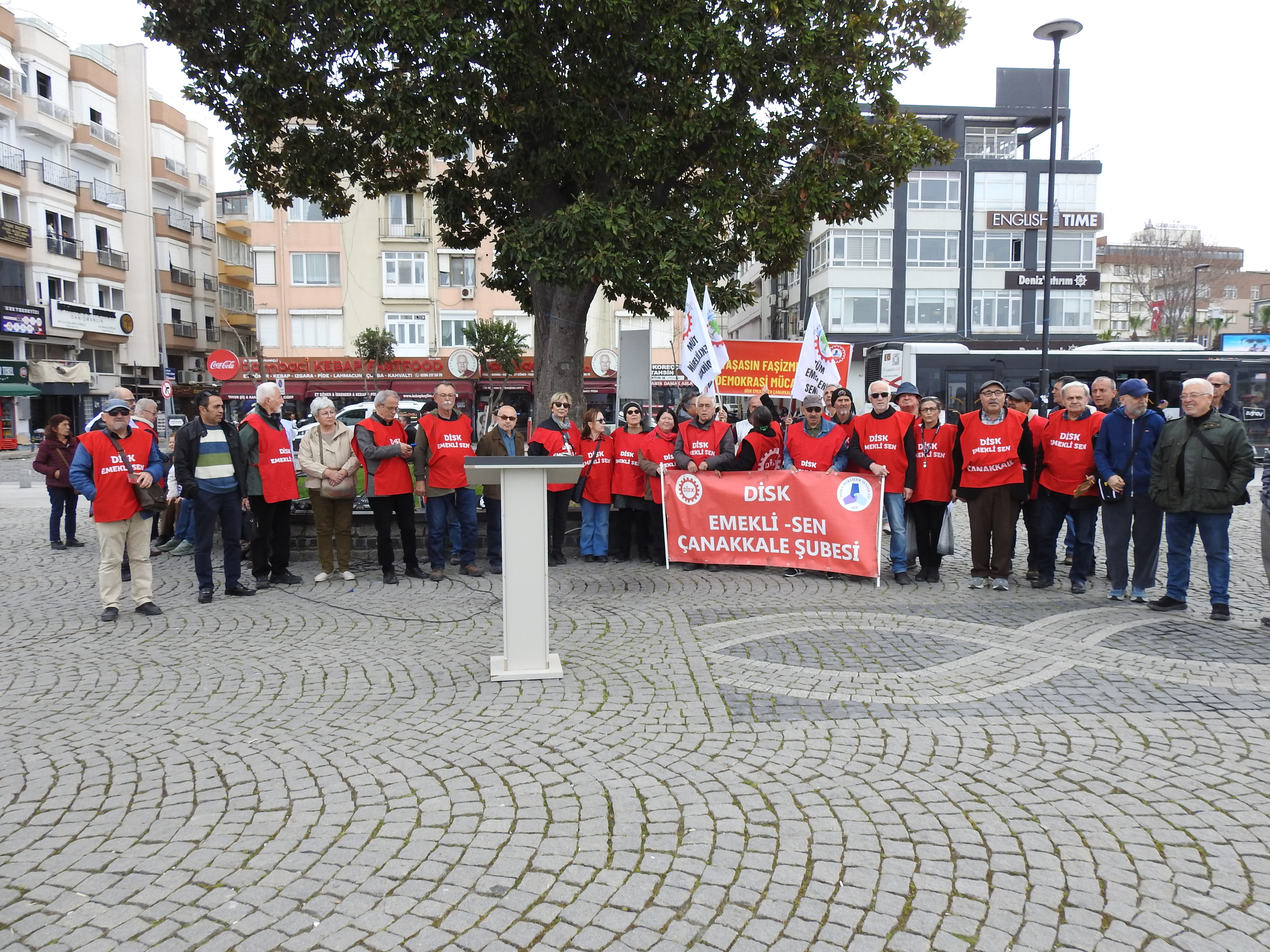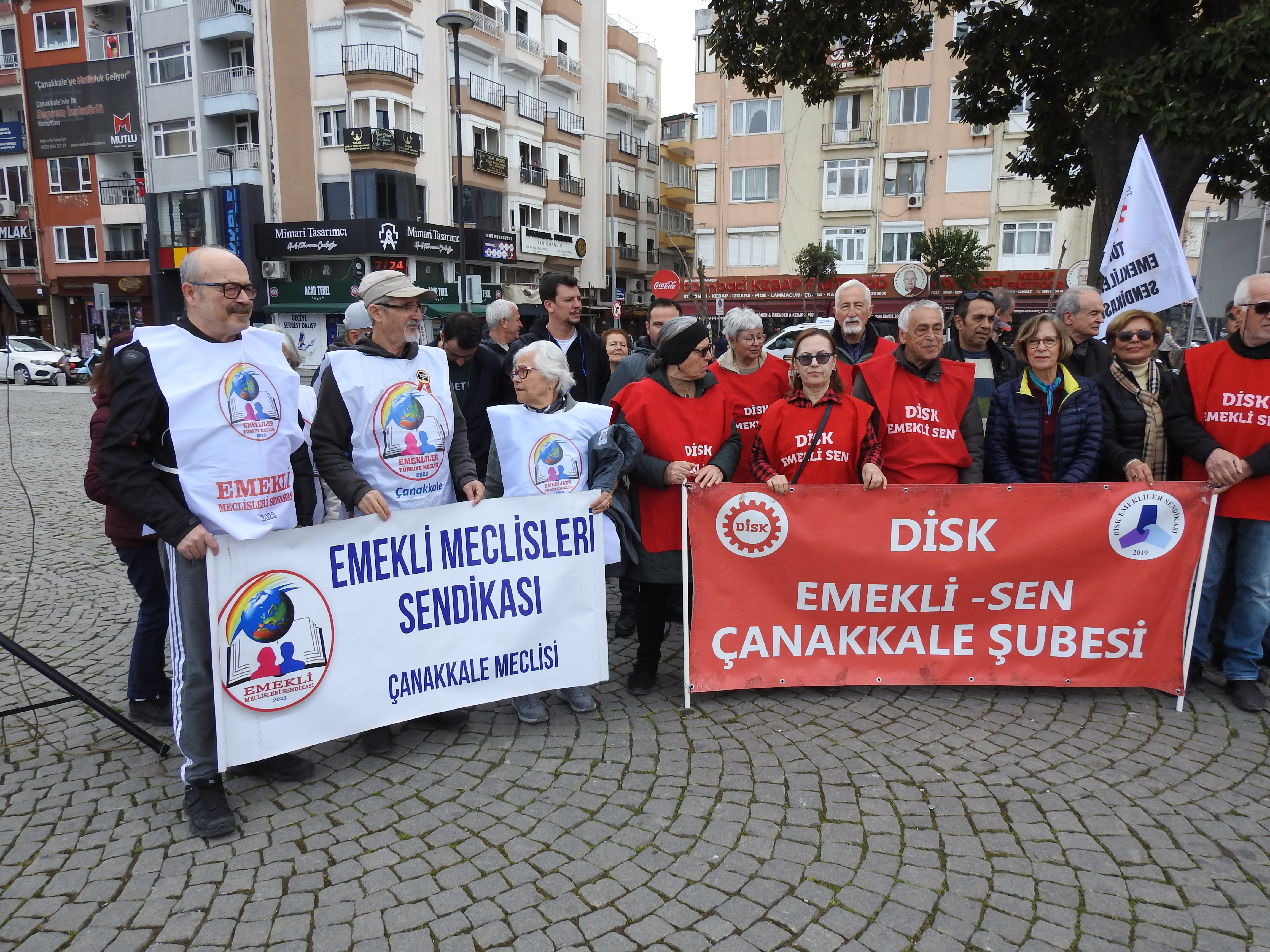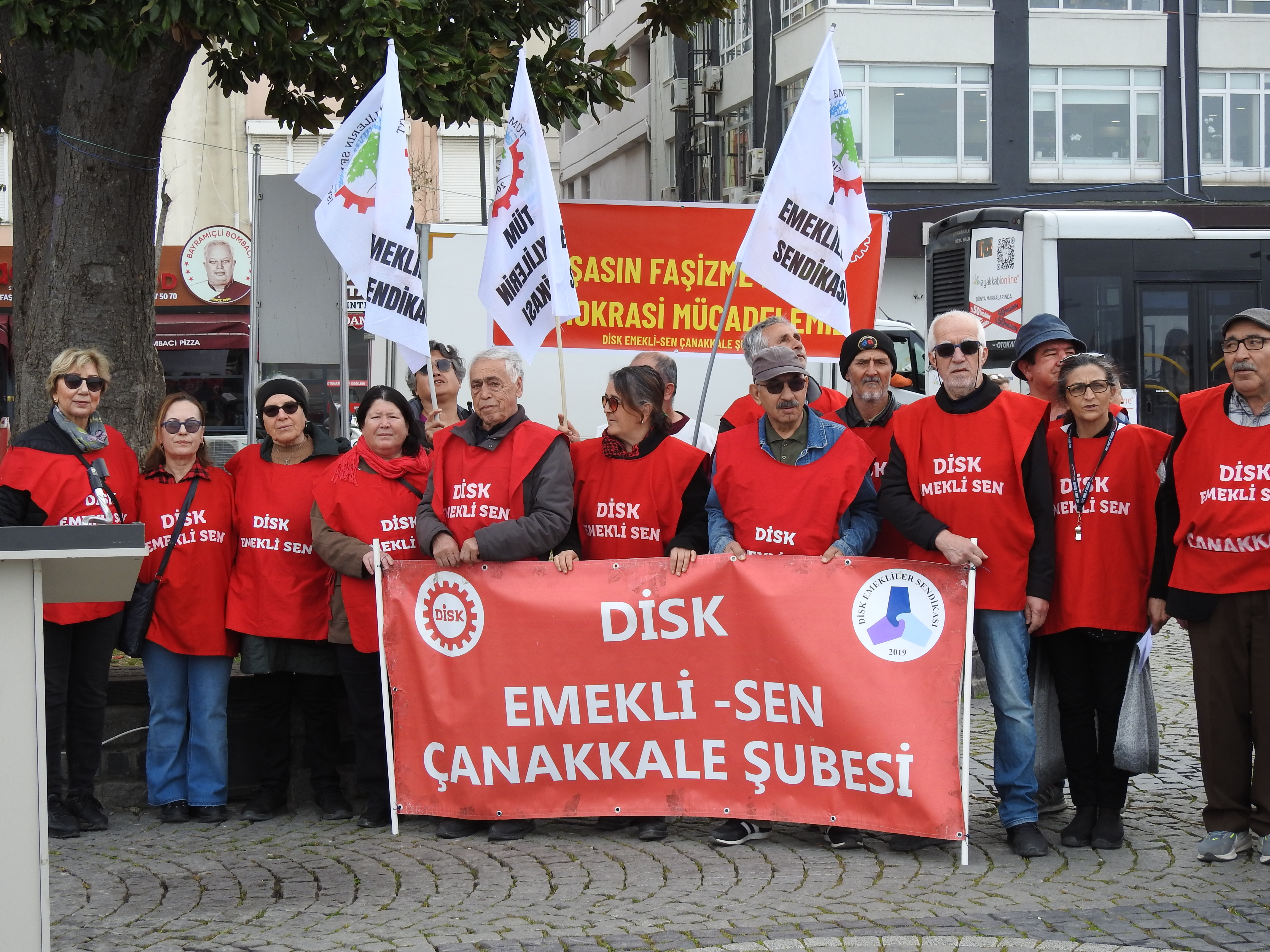 DİSK Emekli-Sen, Türkiye genelinde eş zamanlı basın açıklamaları düzenleyerek emeklilerin yaşadığı ekonomik zorluklara dikkat çekti. Çanakkale’de İskele Meydanı’nda yapılan açıklamada, emeklilerin bayram ikramiyelerinin asgari ücret seviyesine yükseltilmesi talep edildi. DİSK Emekli-Sen Çanakkale Şube Başkanı İrfan Kütüklü’nün yaptığı basın açıklamasına, Emekli Meclisleri Sendikası Çanakkale Meclisi, Yeni Kuşak Köy Enstitüleri Çanakkale Şubesi, DİSK Genel İş Çanakkale Şubesi, Altı Nokta Körler Derneği, Sol Parti ve Türkiye Sosyalist İşçi Partisi Çanakkale İl Yönetimleri, CHP Çanakkale Belediye Meclis Üyeleri ve CHP Çanakkale Merkez İlçe Başkanı İbrahim Can Ergun destek verdi.