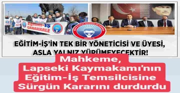 Eğitim iş Çanakkale şube başkanlığından yazılı açıklama geldi. Açıklamada, Eğitim İş Çanakkale Şube Başkanı Serkan Serbes’ in disiplin cezası ve görev yeri değişikliği cezasının mahkeme tarafından iptal edildiğine yer verildi açıklamada şu ifadelere yer verildi.2021 yılı 29 Ekim Cumhuriyet Bayramı kutlamaları çerçevesinde düzenlenen etkinlikten, İzmir Marşı’nın siyasi olduğu gerekçesiyle Lapseki Kaymakamı’nın talimatıyla çıkartılmasından dolayı Çanakkale Şube Başkanımız Serkan Serbes, İzmir Marşı’nın Cumhuriyetimizin bir değeri olduğunu, bu değerlere en ufak şekilde dahi müdahale eden herkese karşı Eğitim-İş’in bir kale gibi duracağını belirten açıklamasını yapmış ve dönemin Lapseki Kaymakamı’nın bu tavrını eleştirmişti. Bu basın açıklamasının ardından Çanakkale Şube Başkanımıza, disiplin cezası ve görev yeri değişikliği cezası verilmesi üzerine süreç, Genel Merkezimiz ve Çanakkale örgütümüz tarafından gerek yerinde eylem ve etkinliklerle gerekse de hukuk mücadelesi direnişiyle karşılanmıştır. Netice olarak Genel Merkezimiz tarafından yürütülen hukuki süreçte, yer değişikliği yani “sürgün cezası” mahkeme tarafından iptal edilmiş, Serkan Serbes’ in bu karşı duruşunun sendikal faaliyet olduğu, sendika yöneticilerine bu sebepten dolayı ceza ve sürgün uygulanamayacağı gerekçesi tarihe not olarak düşülmüştür. Atatürk devrimleri ve Cumhuriyet değerlerine karşı en küçük bir öteleme ya da değersizleştirmeye yönelik en ufak bir müdahaleye dahi, Eğitim-İş’in tüm örgütlü gücüyle bir bütün olarak tereddütsüz şekilde karşı direnişinden vazgeçmeyeceğini tekraren ilan ediyoruz.