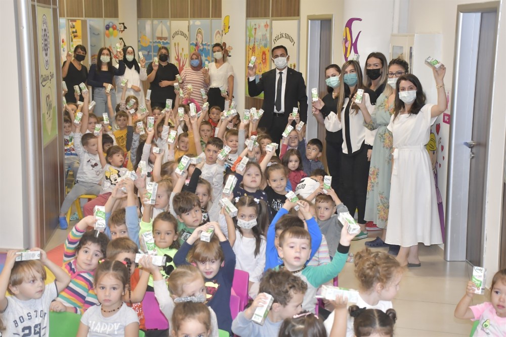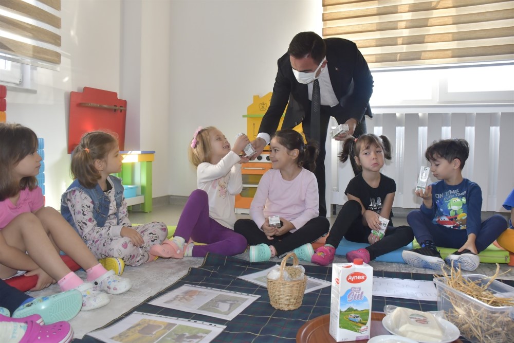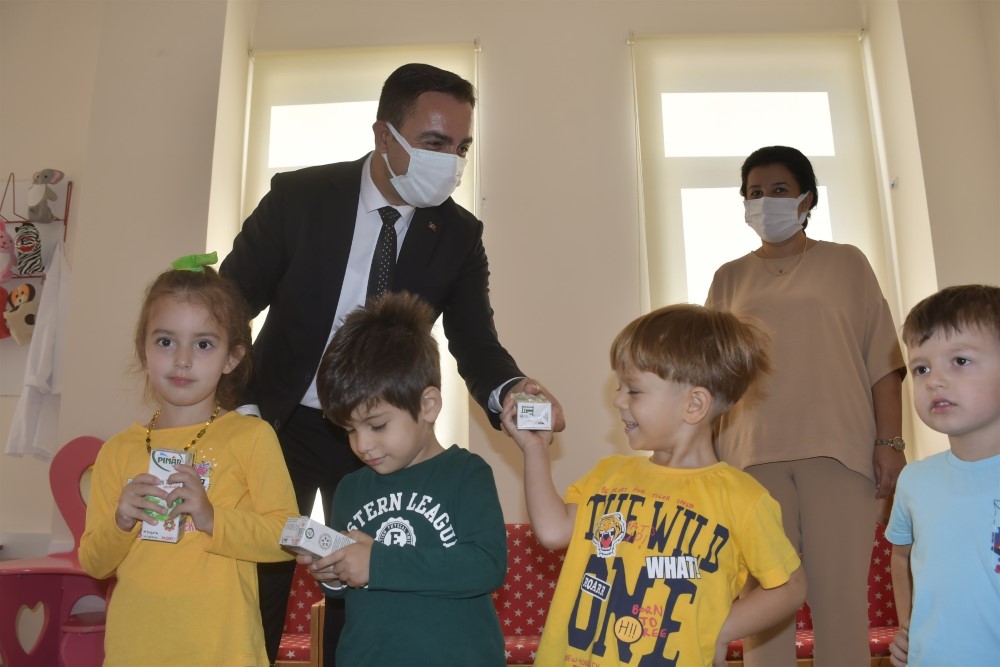 Biga Belediye Başkanı Bülent Erdoğan, 27 Eylül Dünya Okul Sütü Günü kapsamında Belediye kreşlerini ziyaret etti.