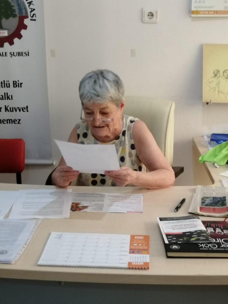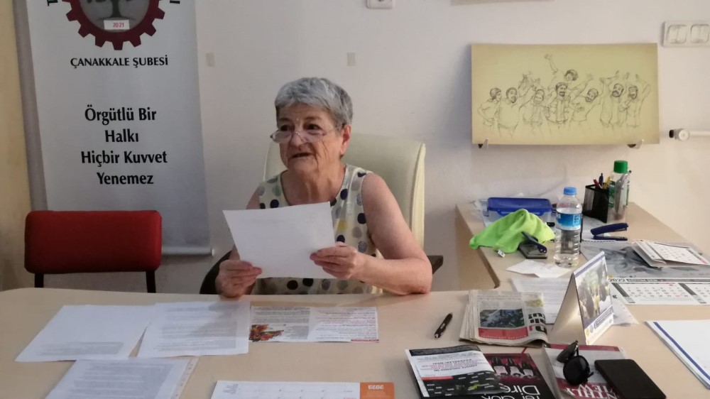 Tüm Emekli Sen Çanakkale Şube Üyesi Şerife Ergun yaptığı basın açıklamasında emeklilerin geçim sıkıntısını dile getirdi. Emeklilerin yıllardır çalışarak vergi ödeyerek ve ülkeye karşı sorumlukluklarını da yerine getirdikten sonra emekli olduklarını hatırlatarak “emekliler yaşanan yüksek enflasyonun sonucu olan hayat pahalılığı altında eziliyor. Emekliler insanca yaşamak istiyor” dedi. Ergun açıklamasın da şu ifadelere yer verdi. “22 yıldır tek başına iktidarda olduğu halde emekliyi görmeyen, açlığa ve sadaka düzeyine indirdiği maaşlarla açlık sınırı altında bir yaşama mahkum eden tek adam iktidarı 14 ve 28 Mayıs 2023 tarihinde yapılan seçimlerle tekrar iktidar oldu. Tek adam rejiminin 22 yıllık karnesine baktığımızda Emeklilerin sendikalarını kapatan, Anayasal ve çağdaş bir hak olan örgütlenme haklarımızı gasp eden bir iktidar görüyoruz. Emeklilere TÜİK’in gerçek dışı uyduruk rakamlarına göre sadaka zamlar veren bir iktidar görüyoruz. Emeklilere ve emekçilere kaşıkla verip kepçe ile alan bir iktidar görüyoruz. Enflasyon ve hayat pahalılığı altında emeklileri inim inim inleten bir iktidar görüyoruz. Açlık sınırı altında bir yaşama mahkum edildikleri için mutfak ihtiyaçlarını bile alamaz duruma düşürülüp, ilerlemiş yaşlarında gururları kırılarak Pazar artıklarını toplamak zorunda bırakan bir iktidar görüyoruz” dedi.