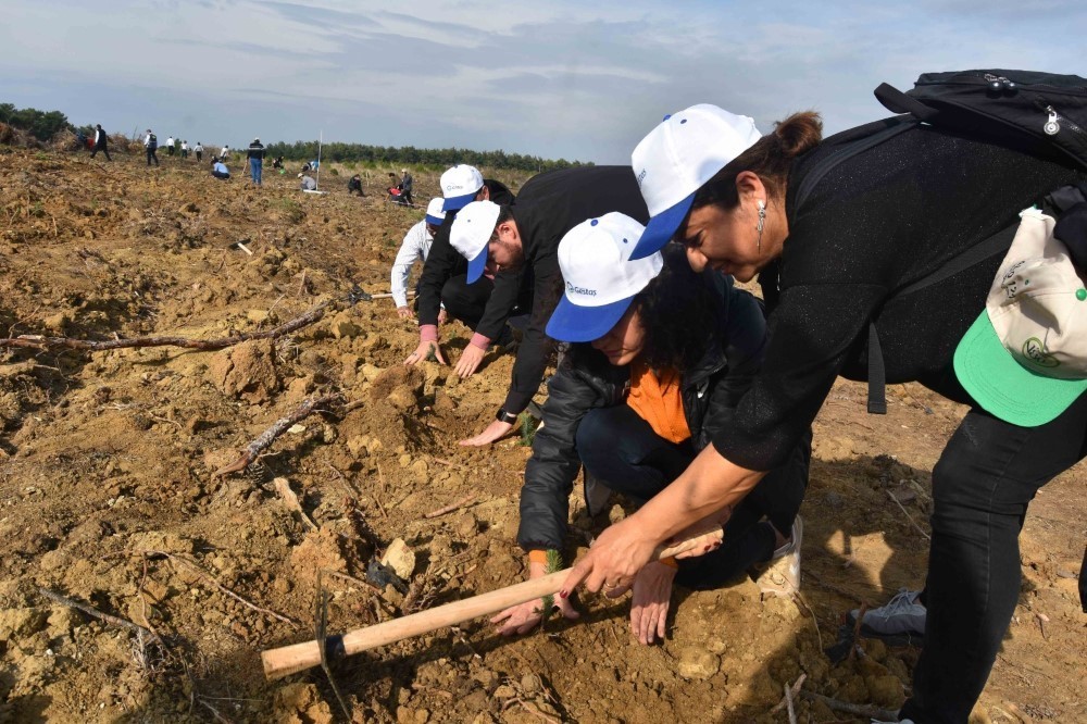 Çanakkale’de 41 farklı noktada 205 bin fidan toprakla buluşurken 10 bin fidanın ekildiği merkeze bağlı Kemal Köyü’ndeki 5 nolu parselde GESTAŞ personelleri de ‘Daha yeşil bir Türkiye’ için fidan diktiler.