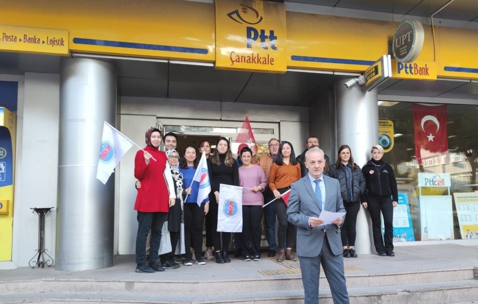 Çanakkale PTT Çanakkale Baş Müdürlüğü önünde bir araya gelen sendika mensupları, sözleşmeli personelin kadroya geçirilmesi hakkında talepler dile getirilirken, yıllardır süren mağduriyetin giderilmesi için hükümetten taleplerini sıraladı. Çanakkale Birlik Habersen İl Başkanı Fersan Kosa’nın tarafından yapılan basın açıklaması ''Basınımızın güzide mensupları, Basın Yayın ve İletişim Hizmet Kolunun kıymetli çalışanları ve sendikamızın sevgili üyeleri PTT’ de görev yapan İHS’ li ve TRT’ de görev yapan ÖHT’ li personellerin kadroya alınması için başlattığımız imza kampanyası sonucunda Ülkemizin her bir köşesinden topladığımız 100.000 i aşkın imzayı, bu gün KADRO bekleyen arkadaşlarımızla birlikte Türkiye Genelinde eş zamanlı olarak, PTT Kargo ile Çalışma ve Sosyal Güvenlik Bakanlığına gönderiyoruz. Bu amaçla da burada toplanmış bulunuyoruz. Kamuda sözleşmeli olarak çalışmakta olan personellerin kadroya alınması hususunda uzun zamandır mücadele eden Memur-Sen ve Birlik Haber-Sen 01.01.2022 tarihi itibariyle yürürlüğe giren 6. Dönem Toplu sözleşmenin 52. Maddesinde “Kamu kurum ve kuruluşlarının görüşü alınarak, sözleşmeli personel mevzuatında düzenleme yapılması suretiyle sözleşmeli personelin statülerinin yeniden belirlenmesine ilişkin çalışma, yetkili konfederasyonun katkı ve katılımıyla 2022 yılı içerisinde tamamlanacaktır.” Hükmünün eklenmesi sağlanmıştır. Bu bağlamda 2022 yılı içerisinde Çalışma ve Sosyal Güvenlik Bakanlığı ile Memur-Sen heyetleri arasında birçok toplantı yapılarak çalışanın talep ve beklentileri dile getirilmiş çalışmanın tüm sözleşmelileri kapsaması gerektiği her fırsatta ifade edilmiştir.'' ifadelerine yer verdi .