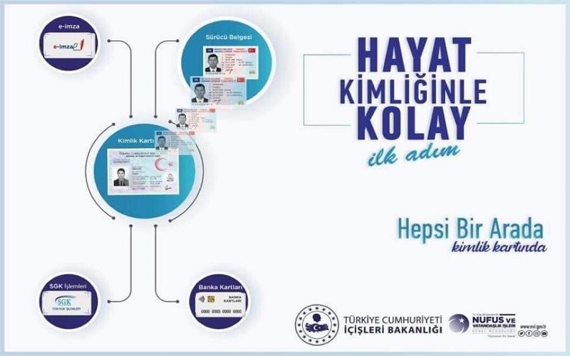 İçişleri Bakanlığı Nüfus ve Vatandaşlık İşleri Genel Müdürlüğünce yürütülen "Hayat Kimliğinle Kolay" projesi kapsamında 21 Eylül 2020 tarihinden itibaren yeni tip sürücü belgesi bilgileri, nüfus müdürlüklerinden randevu alınarak Türkiye Cumhuriyeti kimlik kartına ücretsiz olarak yüklenecek. Ayrıca vatandaşlarımız yeni kimlik kartı başvuruları esnasında sürücü belgelerinin kartın basım aşamasında yeni kimlik kartına yüklenmesini de talep edebilecekler. “Hayat Kimliğinle Kolay” projesi kapsamında vatandaşlarımızın yurt içinde trafiğe çıktıkları zaman yanlarında sürücü belgelerini değil sadece kimlik kartlarını taşımaları yeterli olacaktır. Vatandaşlarımızın, sürücü belgelerini süresi içinde yenilememesi durumunda kimlik kartlarından sürücü belgeleri iptal edilecektir. Uluslararası yasal zorunluluklar gereği yurt dışında sürücü belgesi bulundurma zorunluluğu olduğundan yeni tip sürücü belgesi düzenlenmesine devam edilecektir. Hayat Kimliğinle Kolay projesinin ilk adımı olan yeni tip sürücü belgesi bilgilerinin Türkiye Cumhuriyeti kimlik kartına yüklenmesiyle artık sürücü belgesi taşıma zorunluluğu ortadan kalkmış olacak.