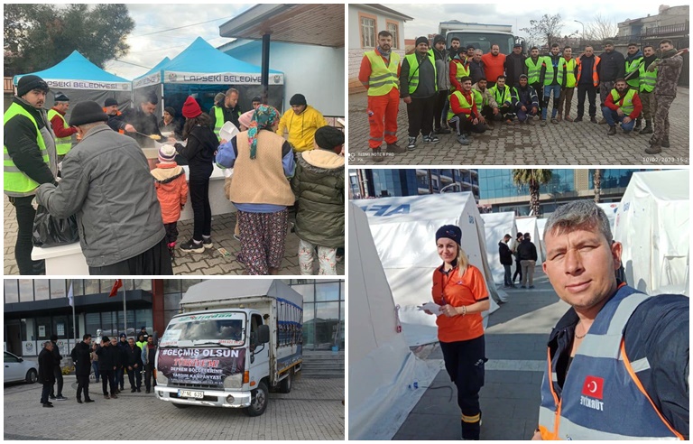 Kahramanmaraş’ın Pazarcık ilçesinde 7,7 ve Elbistan ilçesinde 7.6 büyüklüğünde meydana gelen depremler 10 ilde hissedildi. Depremde çok sayıda bina yıkılırken, yıkılan bina enkazında kalan vatandaşları kurtarma çalışmaları depremin 8. Gününde devam etti. Türkiye’nin dört bir yanından gelen UMKE, AFAD, AKUT, JAK ve özel arama kurtarma ekiplerinin yanı sıra yabancı ülkelerin arama kurtarma depremde büyük yıkım yaşayan İllerde arama kurtarma çalışması yapıyor. Canla başla hatta canlarını bile tehlikeye atarak arama kurtarma çalışmalarına ara vermeden devam eden ekipler çok sayıda vatandaşı enkazlardan kurtardı. Depremin ardından 1 hafta geçmesine rahmen arama kurtarma çalışmalarını devem ettiren ekipler birçok mucize kurtuluşa da imza attılar. Bir yandan enkaz altındaki vatandaşları arama ve kurtarma çalışmaları devam ederken depremden sağ kurtulanlar içinde barınma, ısınma, sıcak yemek, hijyen ve ihtiyaç malzemeleri sorunlarının çözümü için tüm Türkiye seferber oldu. Ancak depremin neden olduğu can kayıpları artmaya devam ediyor Kahramanmaraş, Gaziantep, Şanlıurfa, Diyarbakır, Adana, Adıyaman, Osmaniye, Hatay, Kilis, Malatya ve Elazığ'daki can kaybı 31 bin 643’ yükseldi. Lapseki Belediyesi’de depremin ilk gününden hemen sonra İnsan gücü iş makinesi ihtiyacı olmak üzere sonra deprem bölgelerinin ihtiyacı olduğu tüm malzemeleri Lapseki halkının da yardımları ile toplayarak deprem bölgesine gönderiyor.