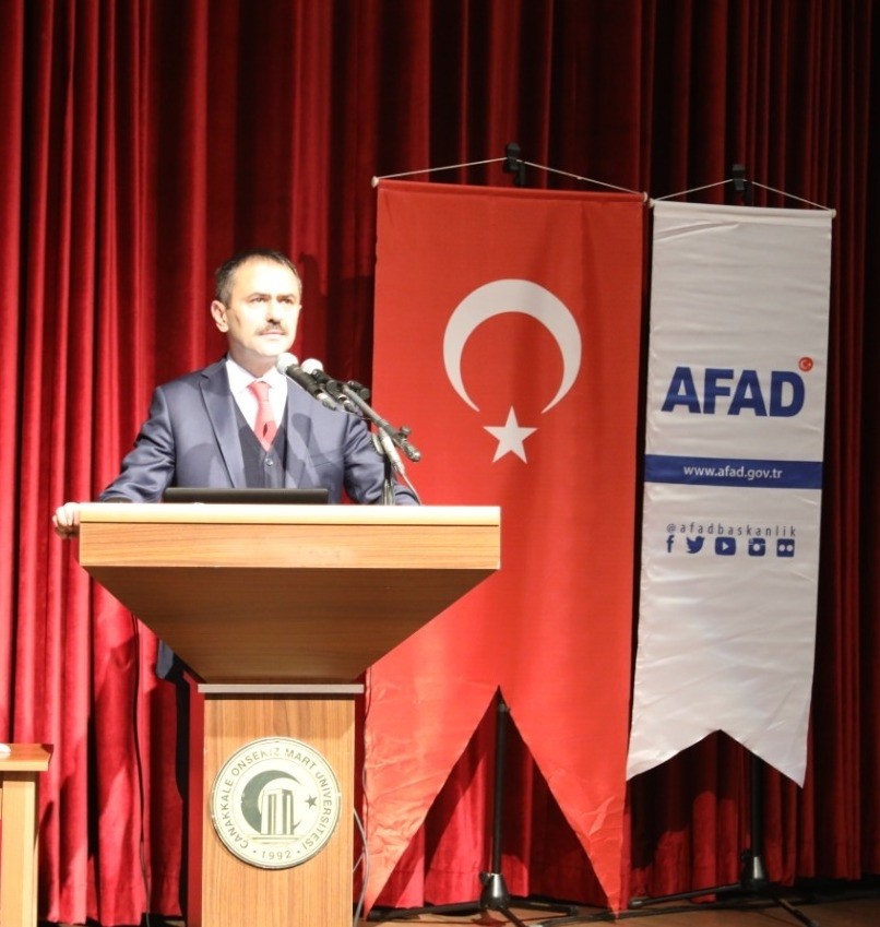 Çanakkale Onsekiz Mart Üniversitesi (ÇOMÜ) İÇDAŞ Kongre Merkezi’nde gerçekleşen toplantıya Vali İlhami Aktaş, Boğaz ve Garnizon Komutanı Tuğamiral Mehmet Cem Okyay, Çanakkale Belediye Başkanı Ülgür Gökhan, ÇOMÜ’yü temsilen Mühendislik Fakültesi Dekanı Prof. Dr. Tolga Bekler, Vali Yardımcısı Ali Muhittin Varol, Çanakkale İl Afet ve Acil Durum (AFAD) Müdürü İbrahim Tarı ile kamu kurum temsilcileri katıldı. İl Afet Risk Azaltma Planı tanıtım filminin izlenmesiyle başlayan toplantının açılış konuşması Vali İlhami AKTAŞ tarafından yapıldı. Açılış konuşmasının ardından AFAD Müdürü İbrahim Tarı, İl Afet Risk Azaltma Planı’nın ne olduğu, amacı, kapsamı ve işleyiş süreci hakkında yaptığı sunum ile katılımcılar bilgilendirildi. ÇOMÜ Mühendislik Fakültesi Dekanı Prof. Dr. Tolga Bekler ise “Çanakkale Depremleri ve Genel Afet Potansiyeli Dünü Bugünü ve Yarını” konulu bilgilendirme sunumu yaptı. Toplantı sonunda 11. Kalkınma Planında afet risk azaltma çalışmaları yapılarak afetlerin neden olabileceği can ve mal kaybının asgari düzeye indirilmesi, tekrarının önlenerek etkinliğinin arttırılması için ulusal ve yerel düzeyde hazırlanacak afet risk azaltma planlarının önemi değerlendirildi.