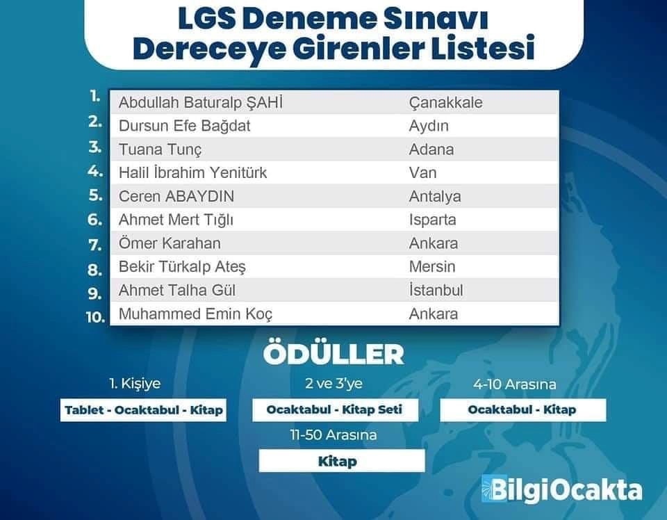 Ülkü Ocakları Eğitim ve Kültür Vakfı Genel Merkezimiz, 23 Mayıs Pazar günü “Ödüllü Çevrimiçi 8. Sınıflar Ücretsiz LGS Deneme Sınavı” yapacağını duyurmuş, ödüllü sınavın aynı zamanda liseye giriş sınavı olan LGS denemesi formatında olacağı vurgulanmıştı. Yapılan LGS Deneme sınavında 8236 kişilik yoğun bir katılım sağlandı. Bilgi Ocak’ta 8. Sınıflar Çevrimiçi Ödüllü LGS Deneme Sınavına katılan, emek harcayan ve ter döken tüm öğrenci kardeşlerimizi kutluyorum. Ayrıca sınavda derece yaparak  1. olan Çanakkale'mizin adını duyuran Abdullah Baturalp ŞAHİN kardeşimizi ve  ilk 50'ye girerek ödül almaya hak kazananları canı gönülden tebrik ediyorum. Çanakkale Ülkü Ocakları Başkanı Hakan İMAMOĞLU Bilgi Ocakta Eğitim Platformu ile ise şu bilgilerde bulundu.  “Ülkü Ocakları Eğitim ve Kültür Vakfı Genel Merkezi tarafından hazırlanan Bilgi Ocakta, başta Türk gençliği olmak üzere milletimizin tüm fertlerinin kullanımına sunuldu. Bilgi Ocakta; öğretirken eğlendiren, eğlendirirken düşündüren, düşündürdükçe geliştiren içerikleriyle Türk gençliğinin kişisel ve akademik gelişimine katkıda bulunmayı hedefliyor. Bilgi Ocakta uygulaması “Eğitim” ve “Eğlence” başlıklı iki ana modül den oluşuyor. Eğitim modülünde Liseye Hazırlık, Üniversiteye Hazırlık, KPSS, ALES başlıkları yer alırken Eğlence modülünde ise 9 farklı başlıktan oluşan “Genel Kültür, Tarih, Coğrafya, Kültür – Sanat, Müzik, Spor, Edebiyat, Sinema, Dergiler” içerikleri bulunuyor. Yetişkinler için tasarlanan içeriklerin yanı sıra çocukların da rahatlıkla ulaşabileceği ve pedagojik gelişimlerine katkıda bulunacak, dört işlem becerisinin geliştirilmesini hedefleyen matematik  etkinlikleri, çocuklar için boyama, ülkemiz ve dünyanın içinde bulunduğu Covid-19 Salgını ve salgından korunma yolları ile ilgili bilgileri eğlendirirken öğreten “Süper Zekâ” oyunu ile çocuklarımız, boş vakitlerini en iyi şekilde değerlendirebilecekler. Bilgi Ocakta Eğitim Sisteminde Sıra Dışı Bilgiler kategorisinde farklı ve özgün konularda hazırlanan, şaşırtırken öğreten, kullanıcıda merak duygusunu uyandıran kısa bilgiler ile Türk Gençliğinin genel kültürünün gelişmesine katkıda bulunulması amaçlanmıştır. Tarihte Bugün kategorisinde kullanıcıların tarihte, o gün gerçekleşmiş önemli ve ilginç olayları, yapılan buluşları ve “tarihte ilk olma” özelliği taşıyan önemli gelişmeler hakkında bilgi edinebilecekleri kısa içerikler yer alıyor.”