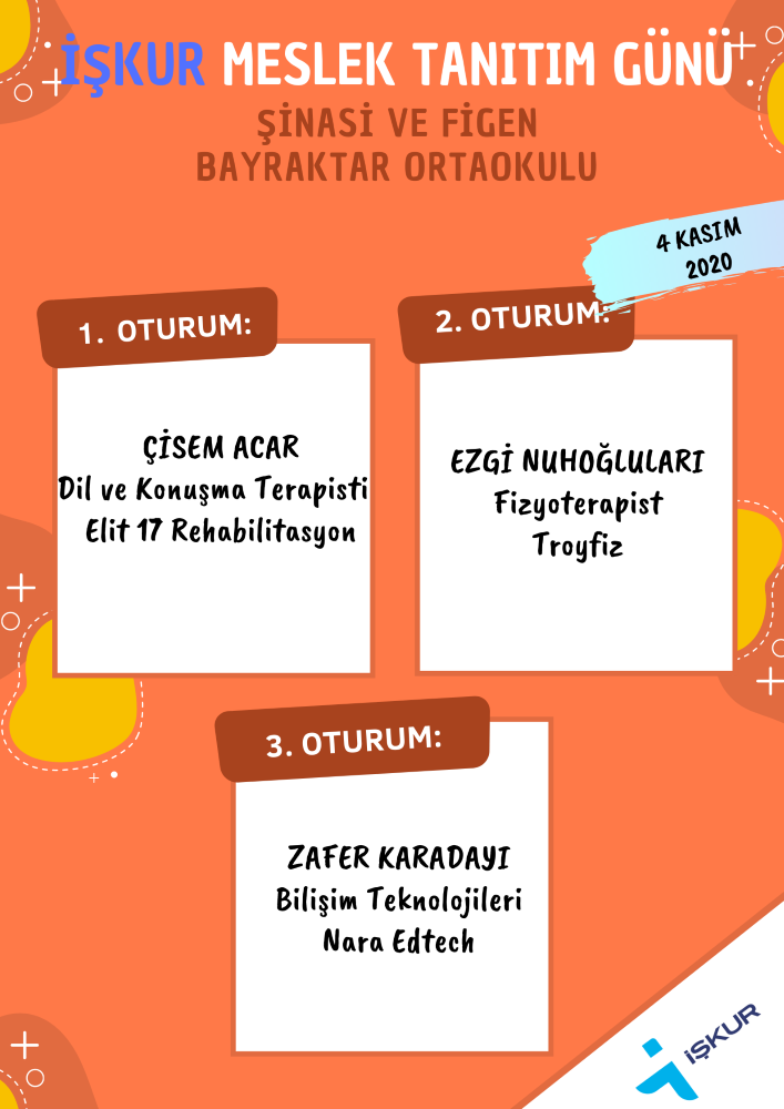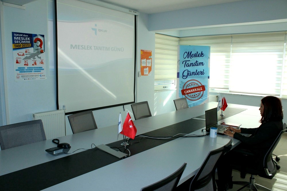 Çanakkale Çalışma ve İş Kurumu İl Müdürlüğünün "İŞKUR Meslek Tanıtım Günü" etkinliği, bu yıl Şinasi ve Figen Bayraktar Ortaokulu 8. sınıfında okuyan 66 öğrencinin katılımıyla Covid-19 salgını nedeniyle dijital ortamda düzenlendi.