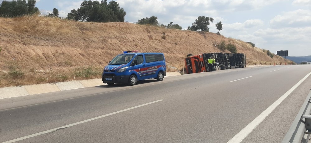 İZMİR YOLUNDA TIR DEVRİLDİ