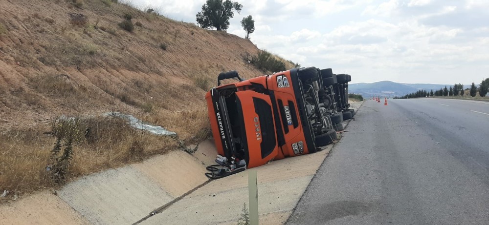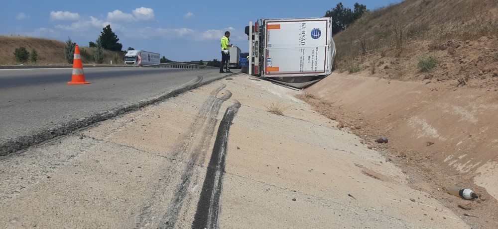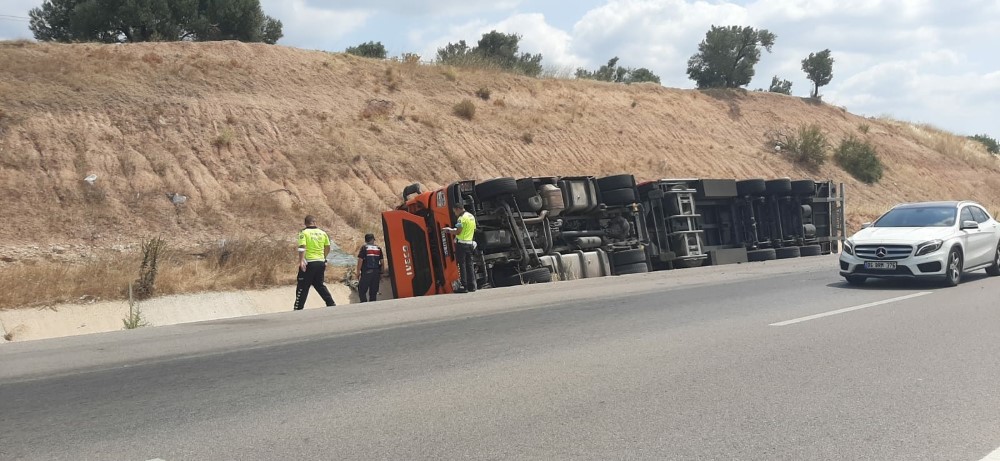 Bugün, öğle saatlerinde, İzmir yolu üzerinde Gökçalı Köyü civarında, seyir halinde giden bir tır devrildi.