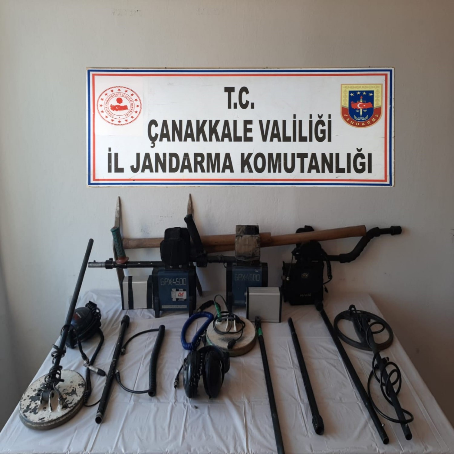 Çanakkale İl Jandarma Komutanlığınca Kaçakçılığın Men ve Takibi Kapsamında Çanakkale İl Merkezi ve ilçelerimizde Tarihi Eser Kaçakçılığı suçunu işleyen şahıslara yönelik sürdürülen çalışmalarda Ezine ilçesi Akköy Köyü sınırları içerisinde kaçak kazı yapılacağı konusunda alınan İstihbarat doğrultusunda belirtilen bölgeye ve muhtemel geliş istikametleri kontrol altına alan ekipler tarafından şüpheli şahıslar takibe alındı ve 3 şüpheli şahıs kazı işlemine başladıkları esnada suçüstü yakalandı. İ.A. ,U.K. ve S.A. isimli şüpheli şahıslar hakkında adli işlem başlatıldı. Şüphelilerin kazı esnasında kullandıkları tespit edilen, 3 adet dedektör, 2 adet kazma ele geçirilmiş olup malzemelere el konulmuştur.
