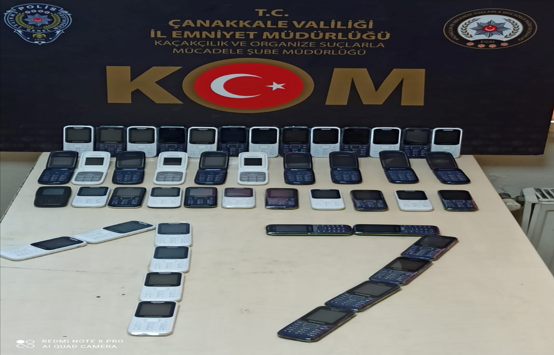 Çanakkale Emniyet Müdürlüğü, Kaçakçılık ve Organize Suçlarla Mücadele Şube Müdürlüğünce Çanakkale’nin Gelibolu ilçesinde Kaçakçılık Suçlarının önlenmesine yönelik yapılan istihbarat çalışmaları sonucunda Farklı marka ve modellerde gümrük kaçağı ve klonlanmış 46 adet cep telefonu ele geçirildi. Cumhuriyet Savcısının talimatına istinaden şahıs hakkında 5607 SKM-5809 SKM suçundan adli işlem yapıldı. Şahıs Gelibolu İlçe Emniyet Müdürlüğümüzden serbest bırakıldı.